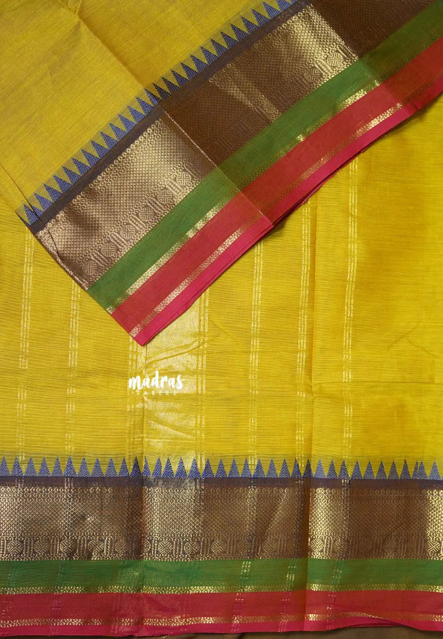Dual Shade Yellowish Green - Karthigai Silk Cotton Rudraksham and Multi Color Border - Best for Wedding Functions