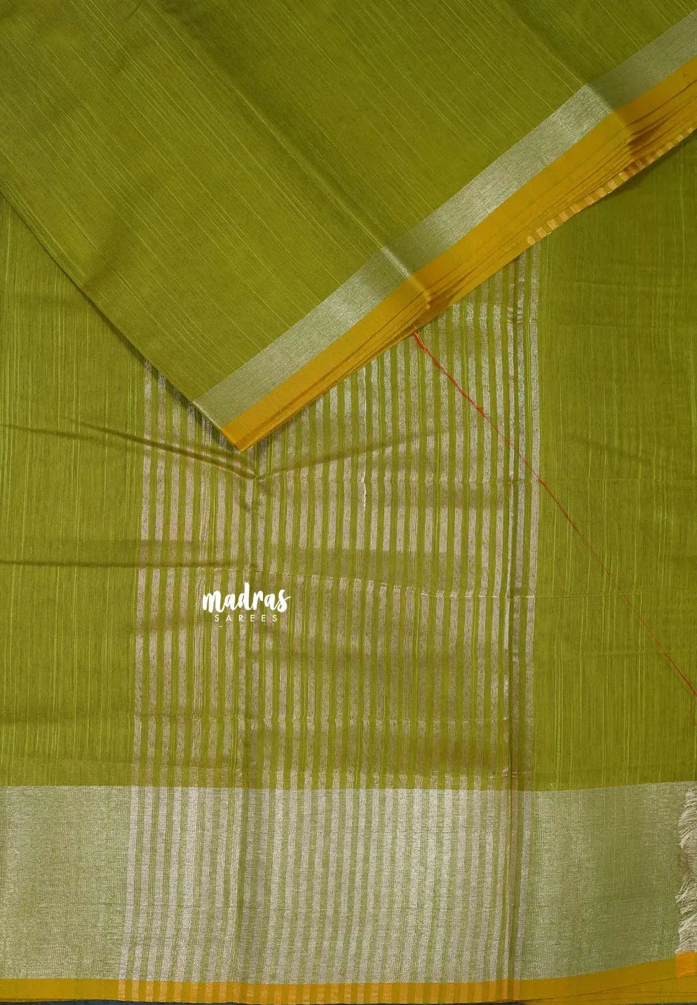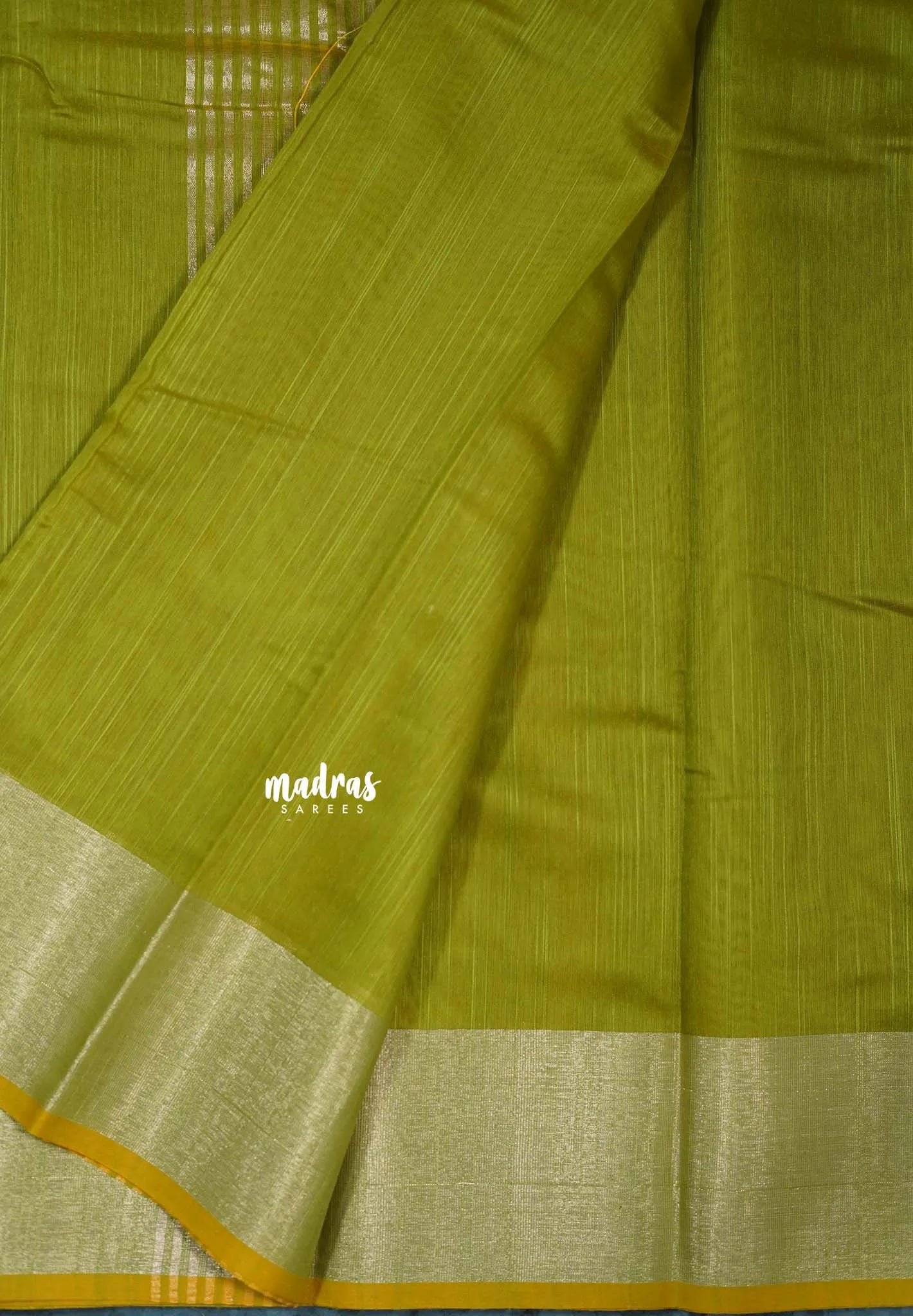 Dual Shade Yellowish Green - Maheswari - Maheswari cotton silk with tissue border - Best for Simple Functions