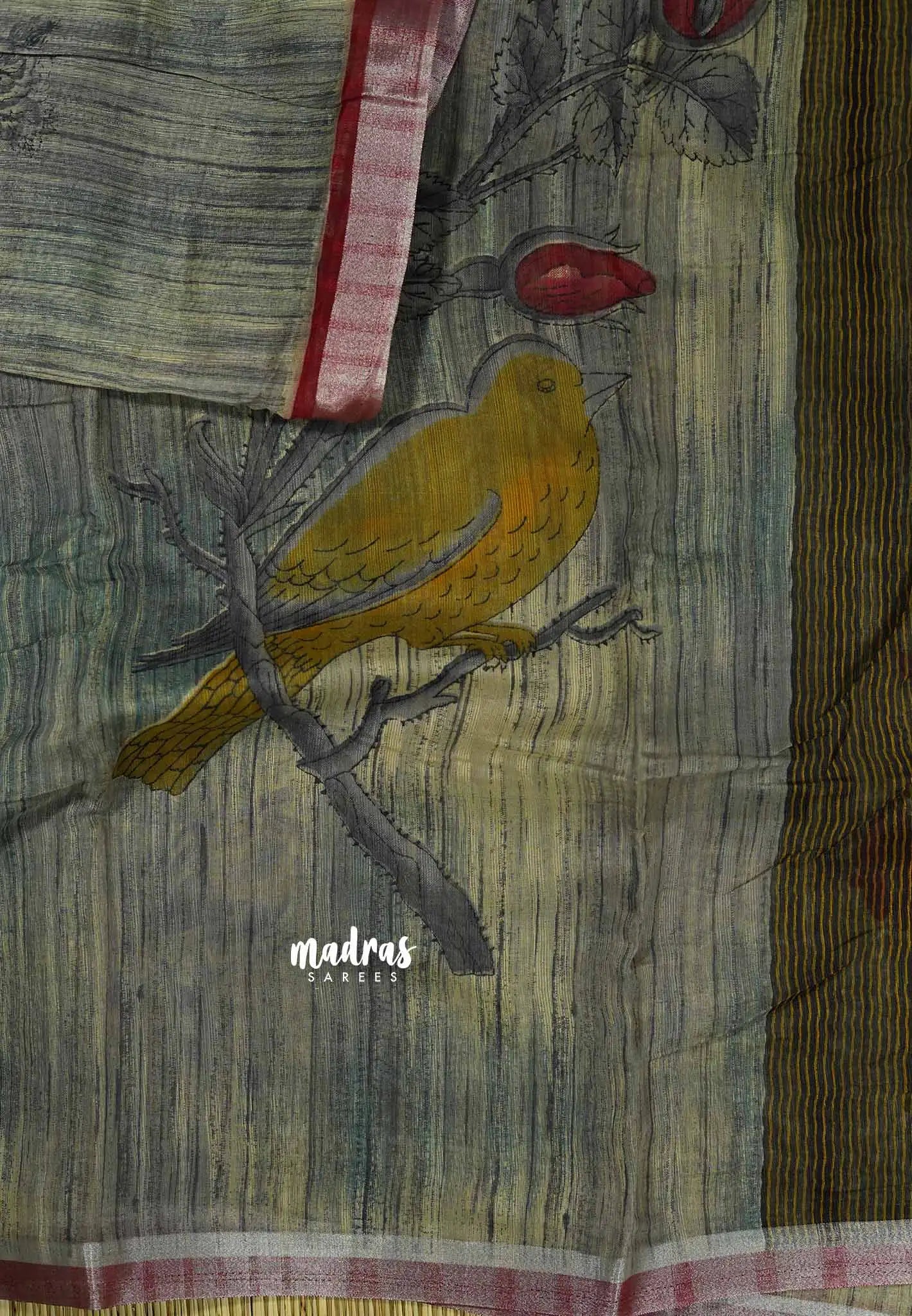 Earth stone Grey - Isha - chanderi cotton with tissue border