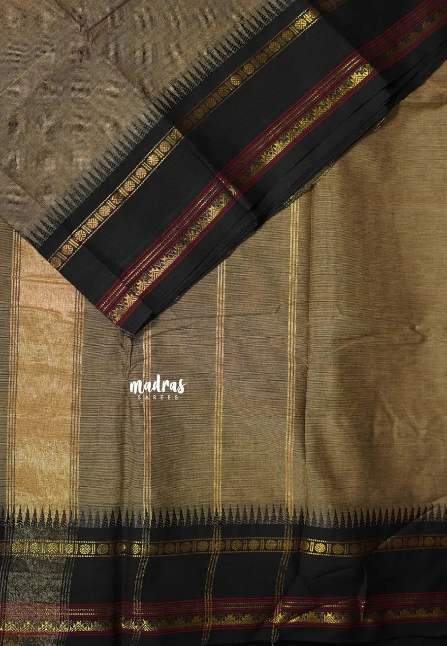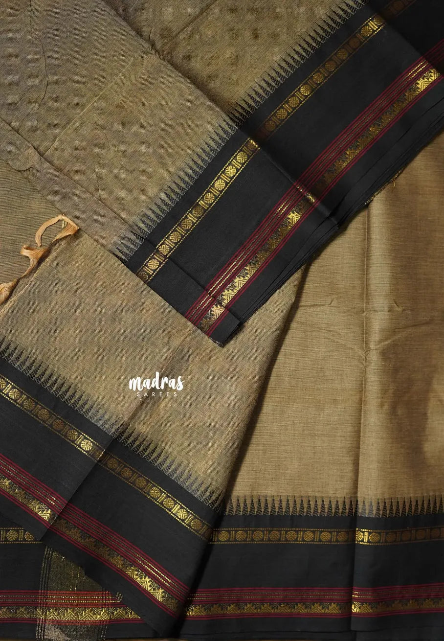 Earthen Taupe - Karthigai silk cotton plain body rudraksham skirt border - Best for Small Functions