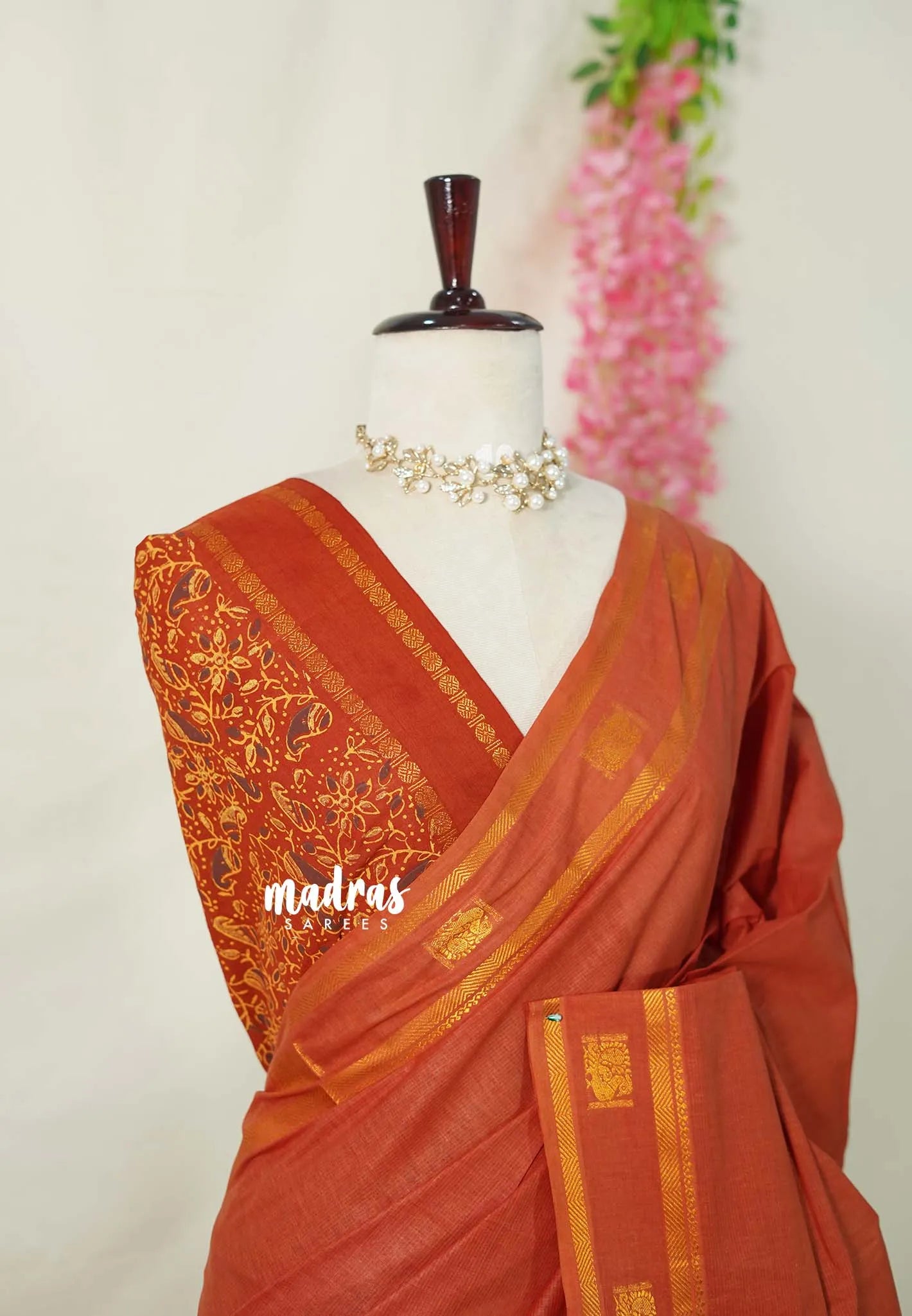 Rooted in heritage craftsmanship, this saree brings together simplicity and sophistication, making it a versatile choice for everyday elegance as well as meaningful occasions. The neat finishing and refined weave highlight the care and attention given to every detail.