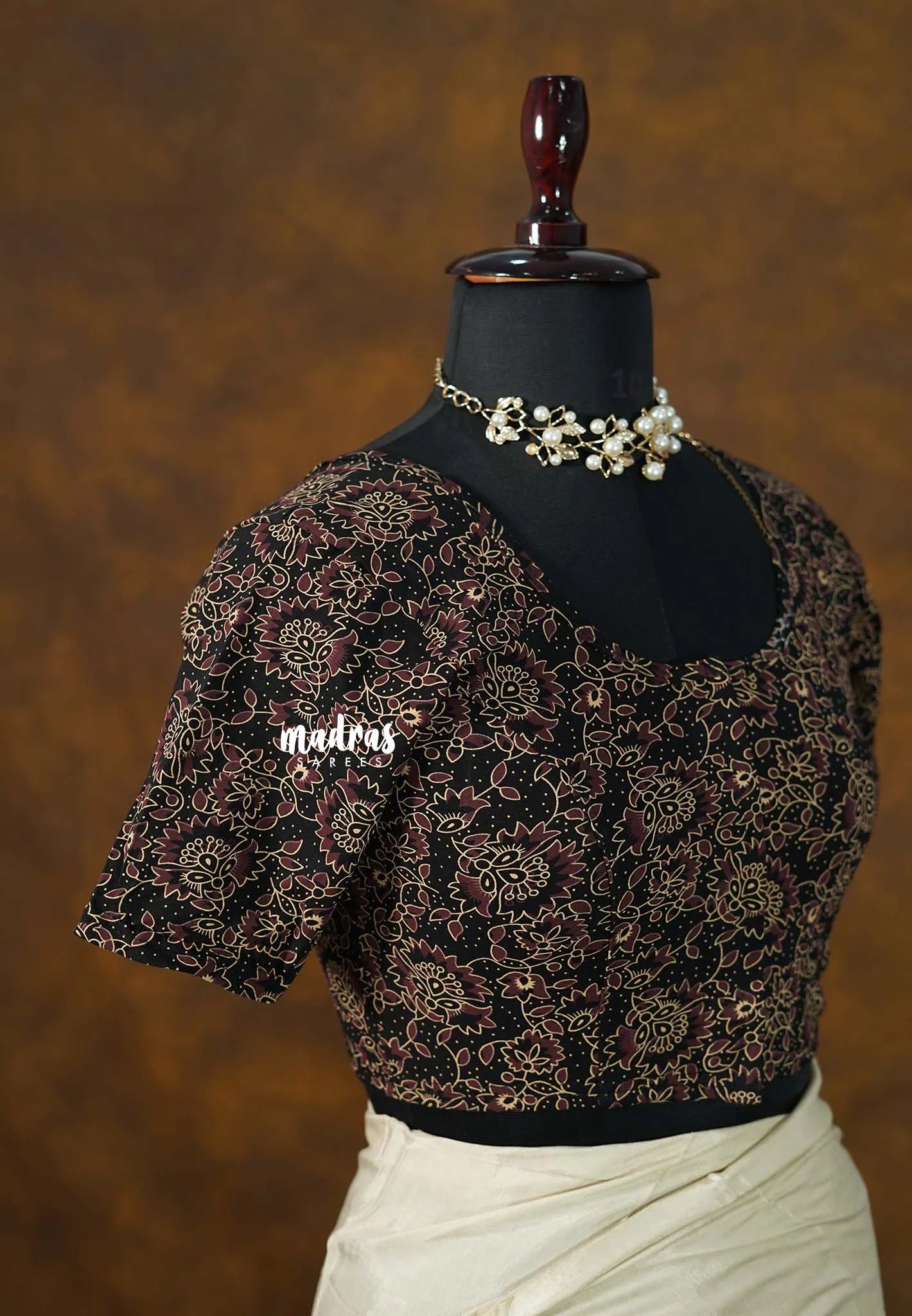 Ebony Black - Stretchable Fabric = Stress-Free Fit ✨ Lycra Cotton Readymade Kalamkari printed Blouse – Perfect Fit Comfort