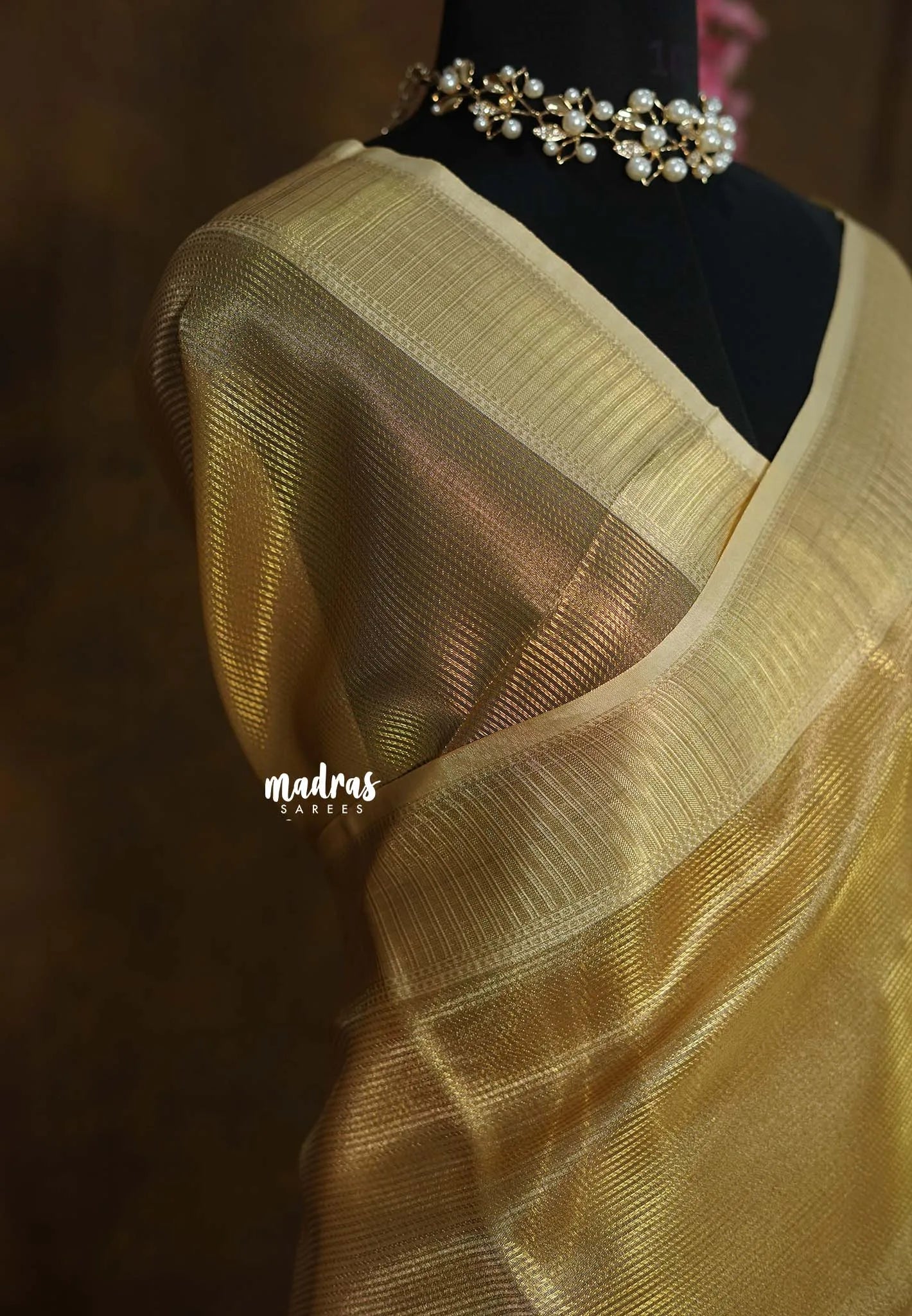 A Banarasi tissue silk saree is a luxurious garment from Varanasi, India. It’s crafted from fine silk, often with metallic threads that give it a shimmering effect. Key features include intricate zari work, rich colors, and a heavy, elegant drape. These sarees are perfect for special occasions like weddings and festivals.