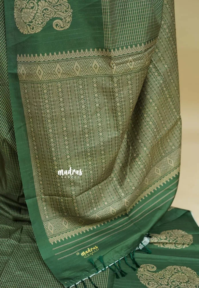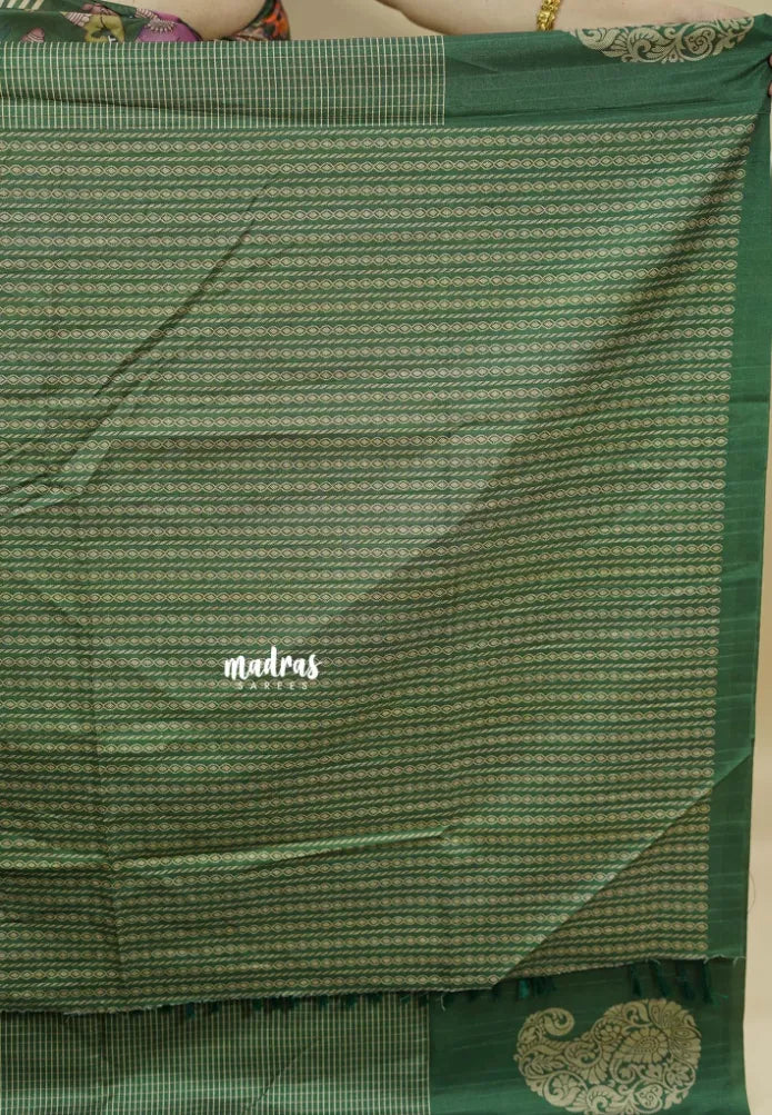 Forest Green - Yamini paper silk mango border and sirukattam body