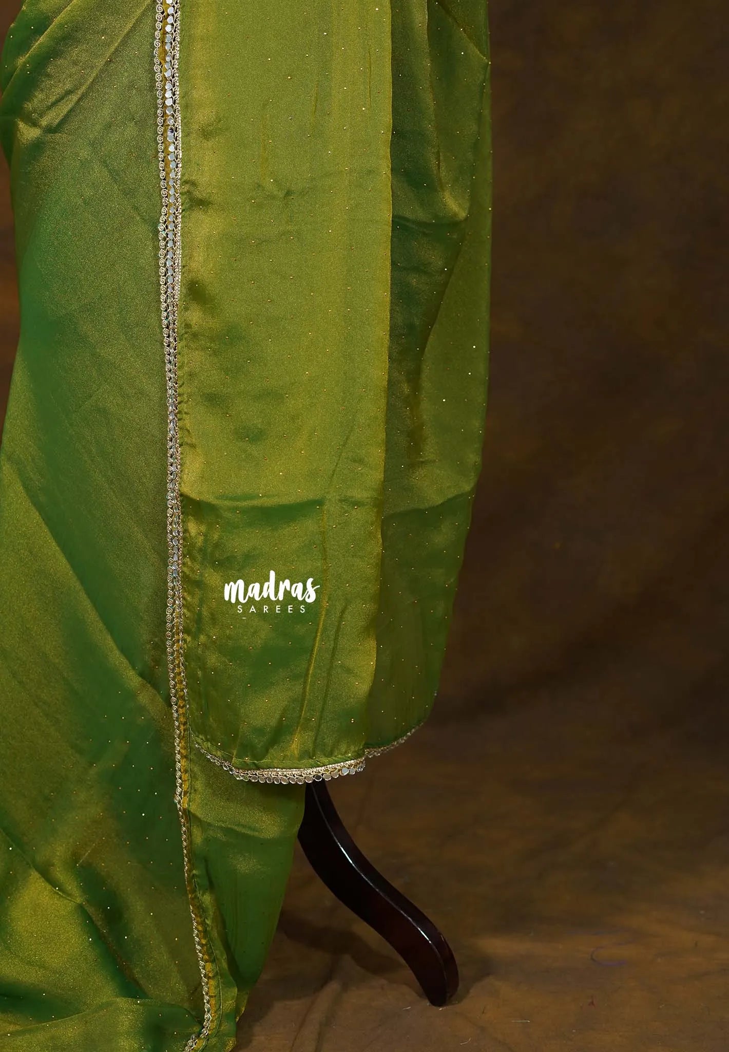 A soft and flowy Space Silk Saree in a dreamy tone, that give it a graceful, airy look. The fabric drapes beautifully, offering a lightweight, elegant silhouette perfect for daytime functions and festive gatherings.