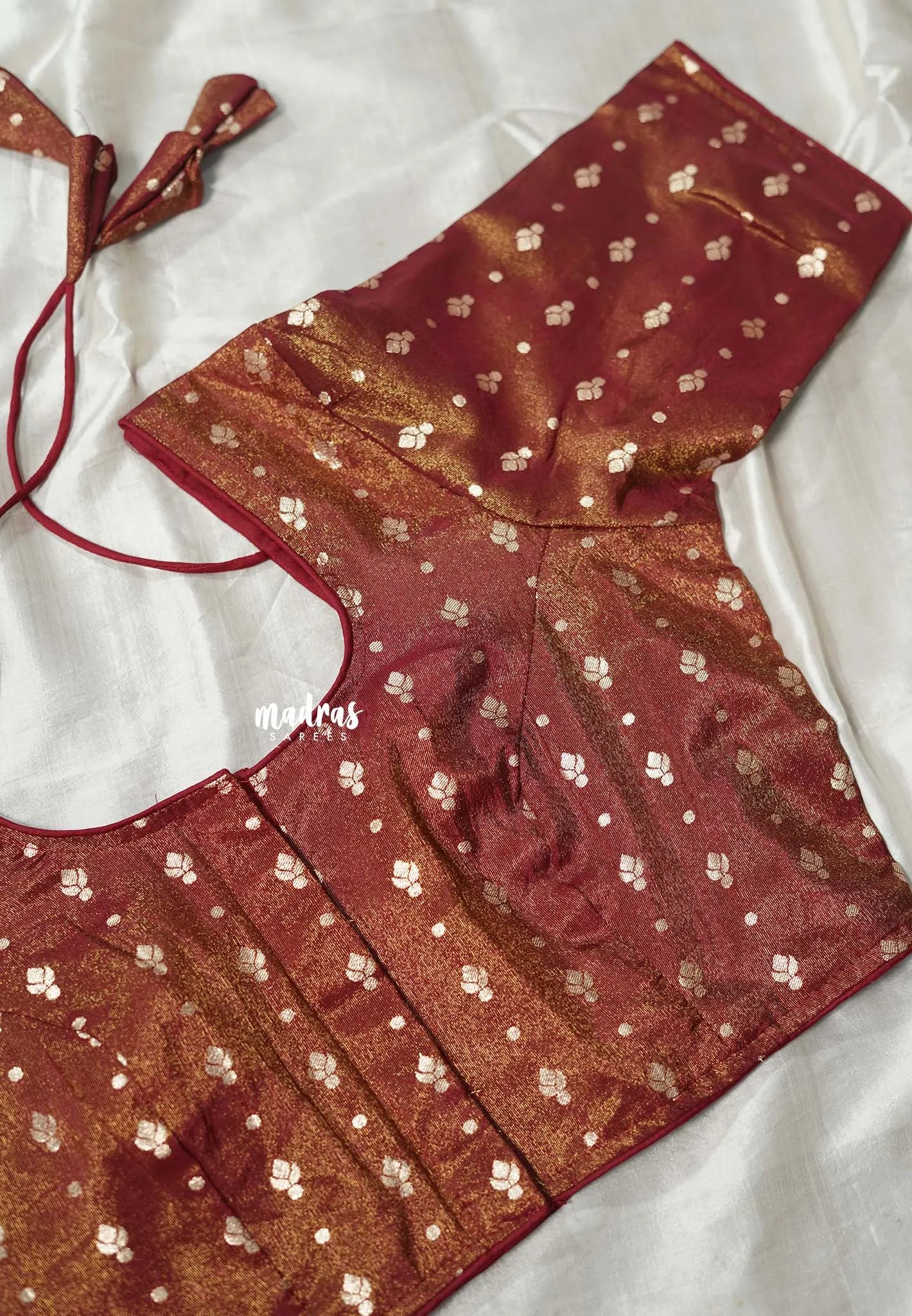 Golden Shade Maroon - Shimmering Gold Tissue Silk Cotton Readymade Blouse