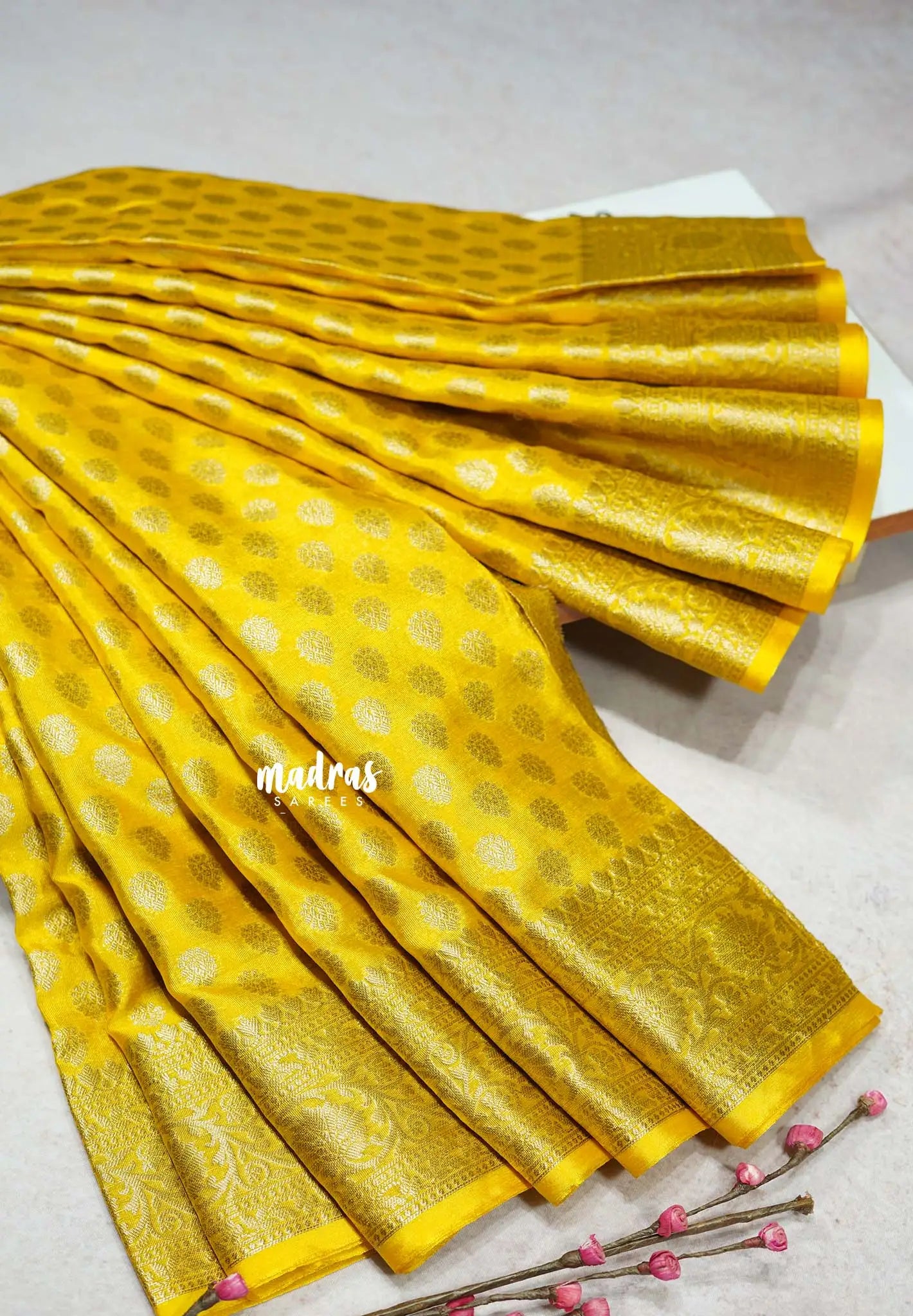 Golden Yellow - Durga - Rich Banarasi soft katan silk with zari border