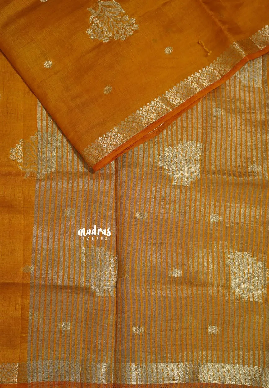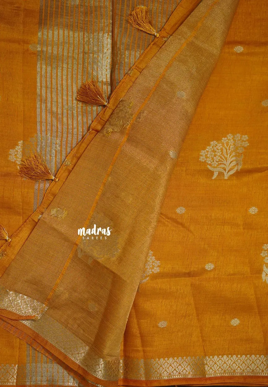 Golden Yellow - Raaga - Semi Tussar with Zari Floral Buttas and Small Border- Best for Gifting