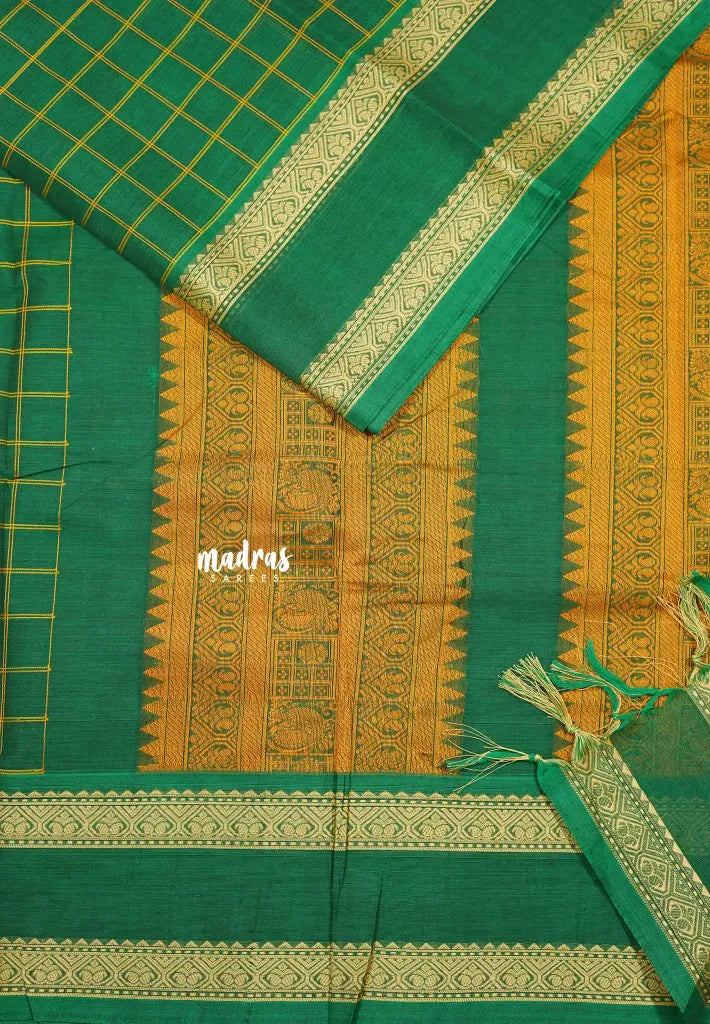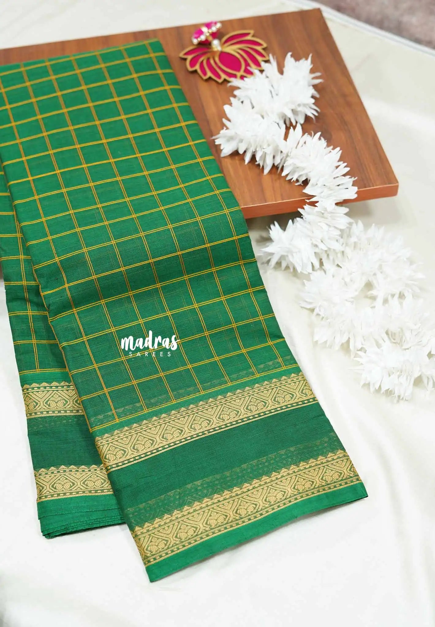 • Our curated collection showcases a variety of Korvai silk cotton Sarees in Kanchipuram, reflecting the cultural heritage of South India. Contrast Border with Rich Zari heavy Pallu