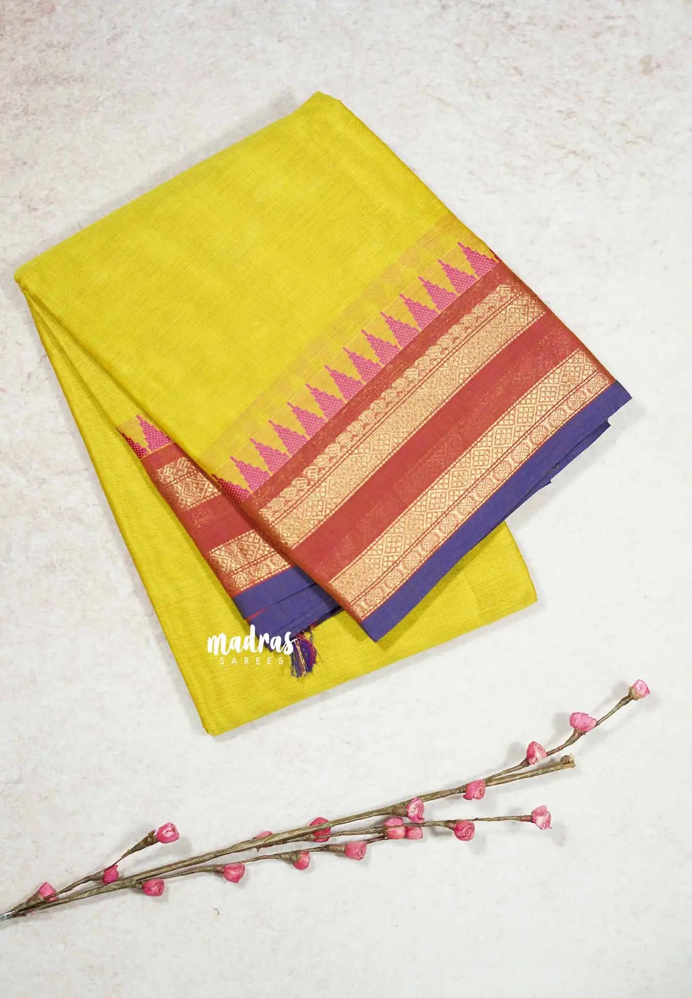 Greenish Yellow - Karthigai silk cotton Rettapet rudraksham border