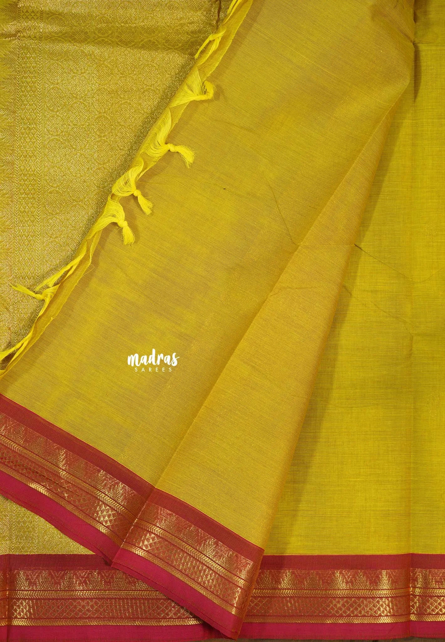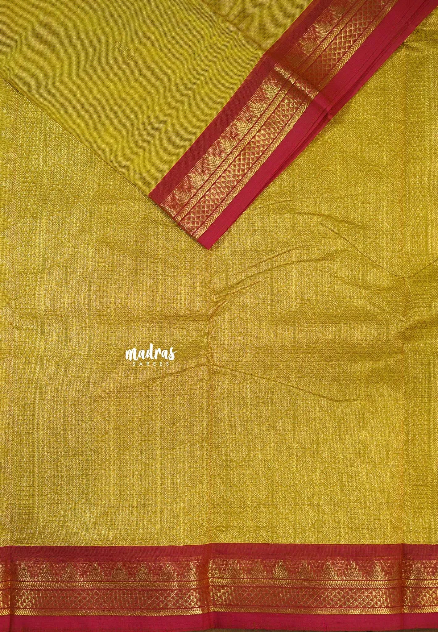 • Our curated collection showcases a variety of Korvai silk cotton Sarees in Kanchipuram, reflecting the cultural heritage of South India. Contrast Border with Rich Zari heavy Pallu