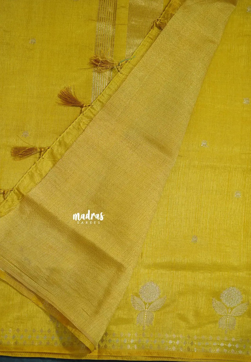 Greenish Yellow - Raaga - Lightweight Semi tussar saree with zari bloom border with buttas - Perfect for Festive Moments