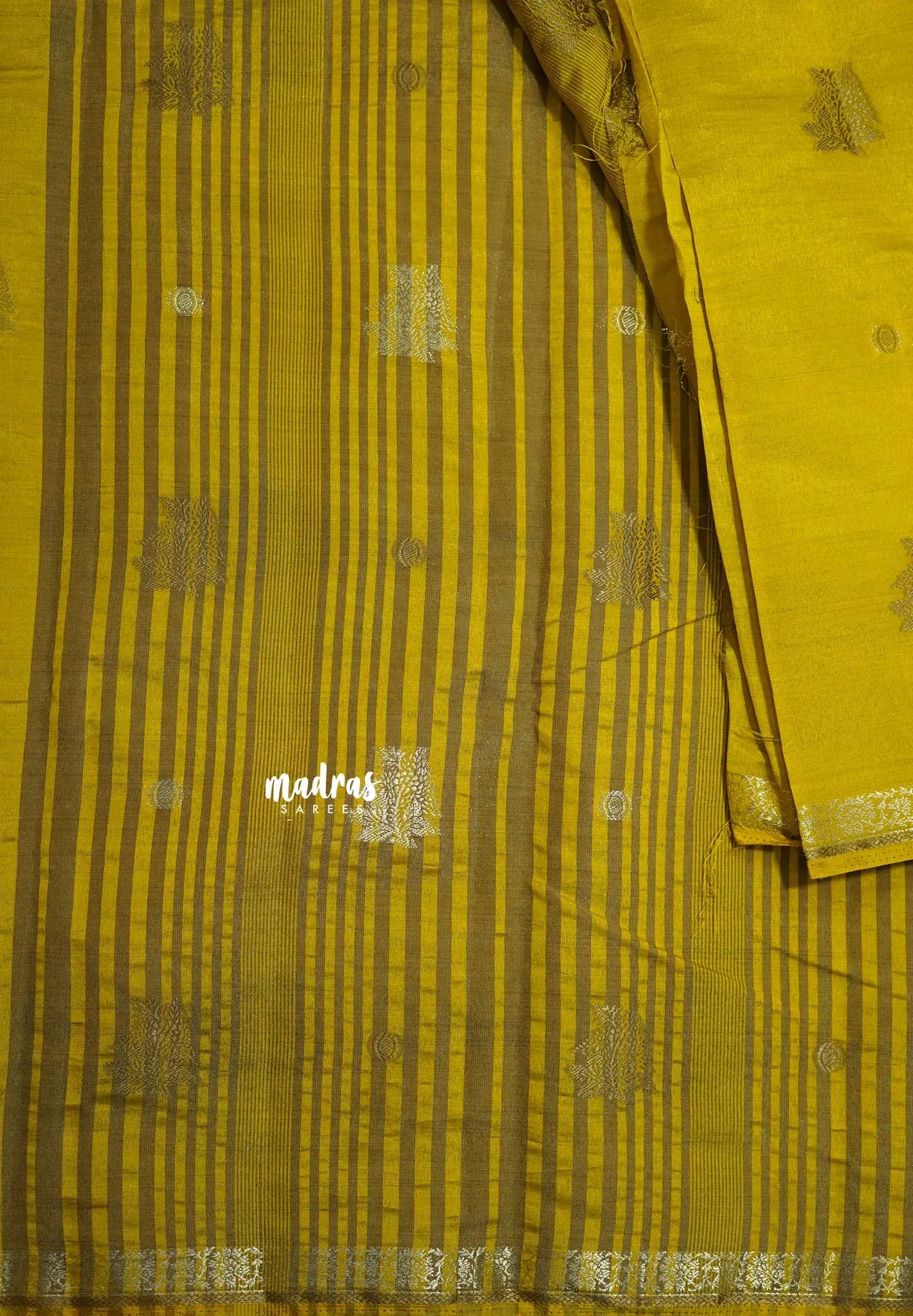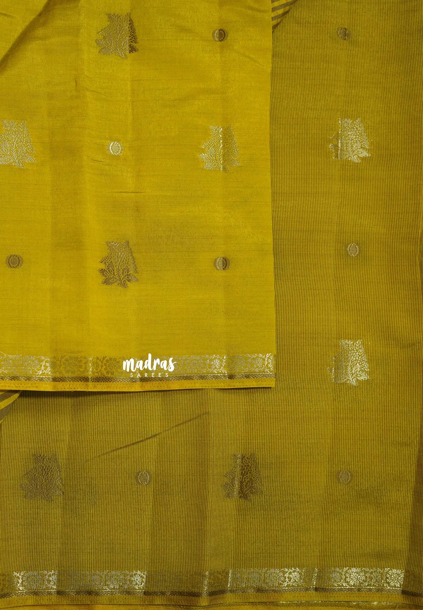 Greenish Yellow - Raaga - Semi Tussar and Tiny Border with Floral and Buttas - Best for Gifting