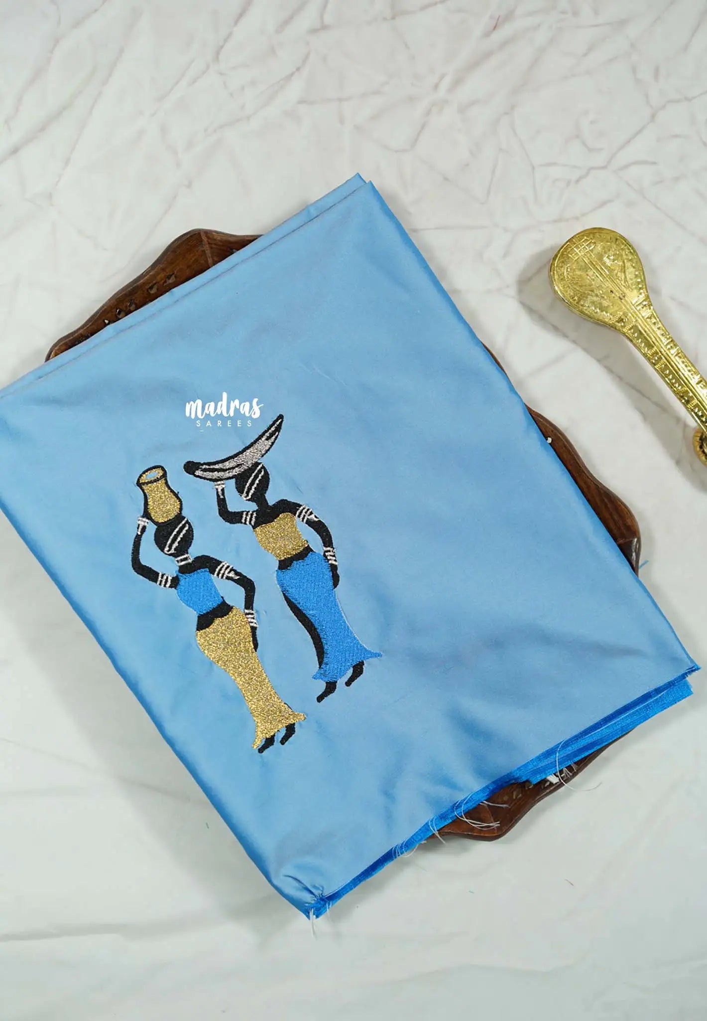 Ice blue - Mayuri - 1 mtr Silk Cotton Embroidered Blouse Piece – Village Folk Art Motif