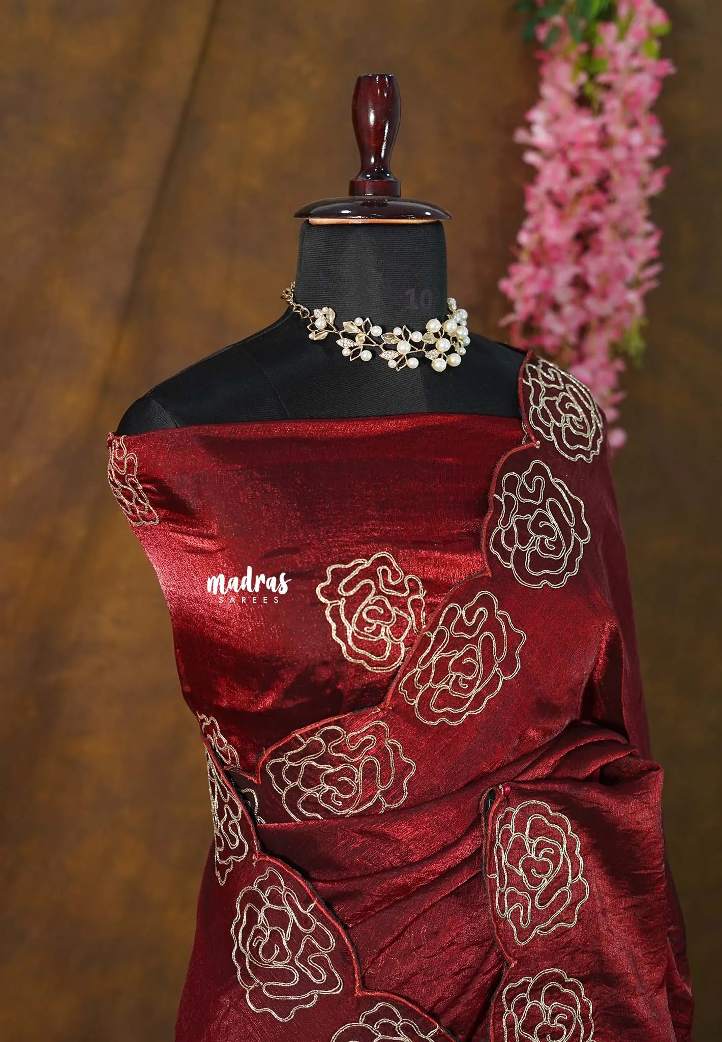 Drape yourself in timeless elegance with this Crush Satin Silk saree, beautifully enhanced with intricate gota patti work. The softly crushed texture adds depth and richness to the fabric, while the subtle sheen of satin silk gives it a luxurious finish. Delicate floral motifs in gota patti lend a festive charm, making this saree perfect for weddings, celebrations, and special occasions. Graceful, lightweight, and effortlessly elegant, it promises a stunning drape and standout appeal.