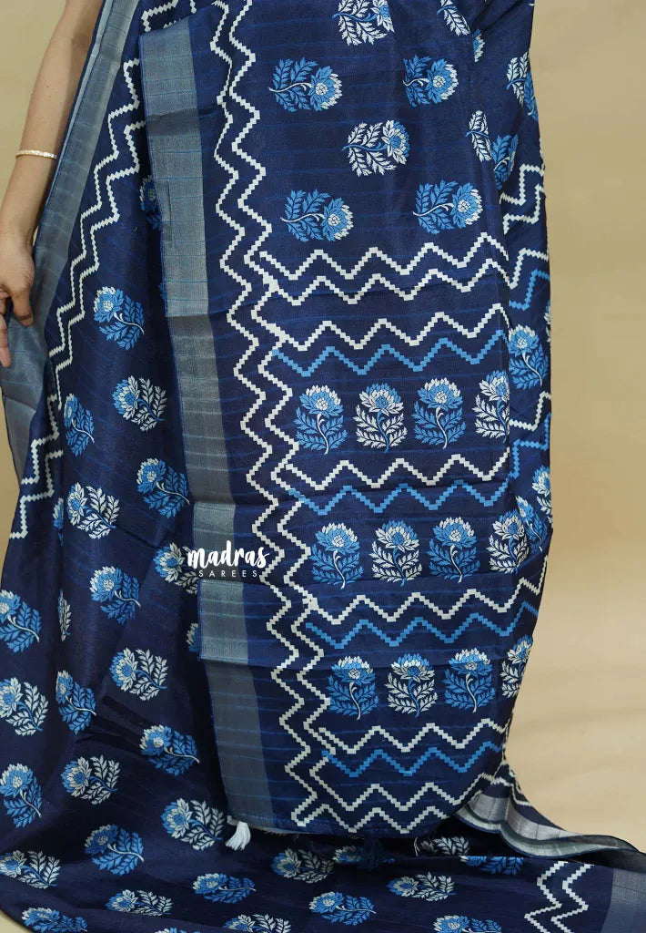 Super budget Malgudi printed silk. With its lightweight and smooth texture, this saree is perfect for daily office use and gifting.