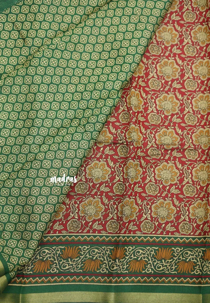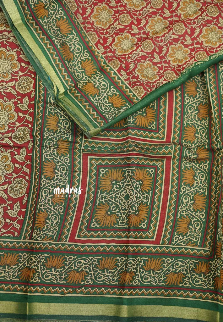 Kalanjali chanderi silk cotton kalamkari floral prints - Red