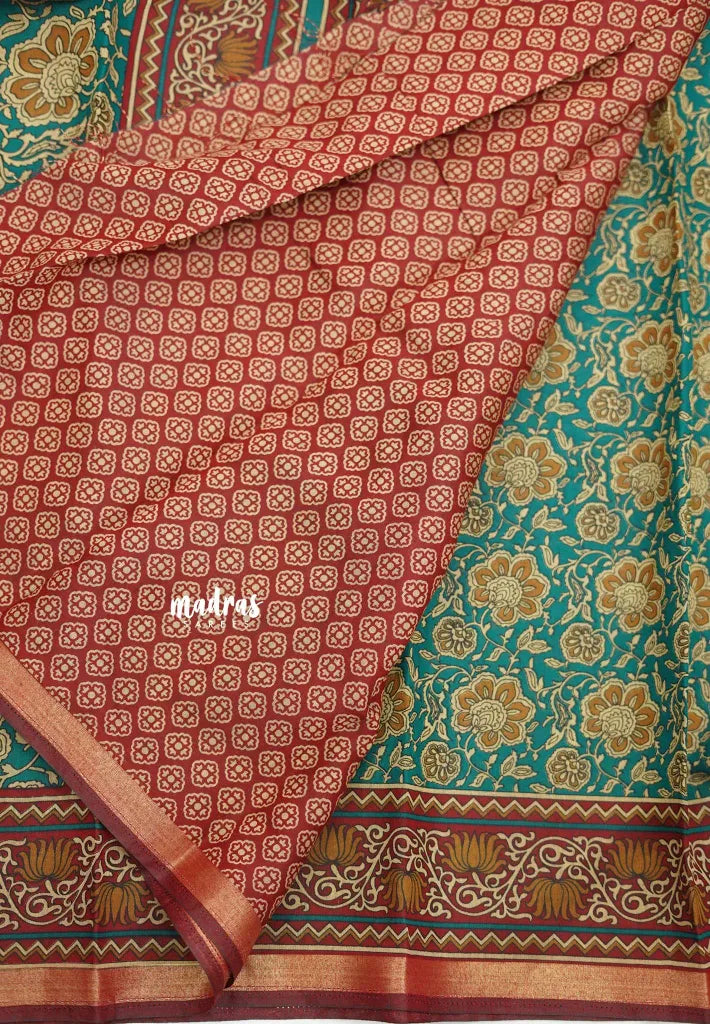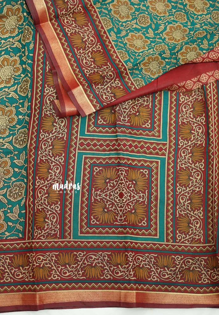 Kalanjali chanderi silk cotton kalamkari floral prints - Teal green