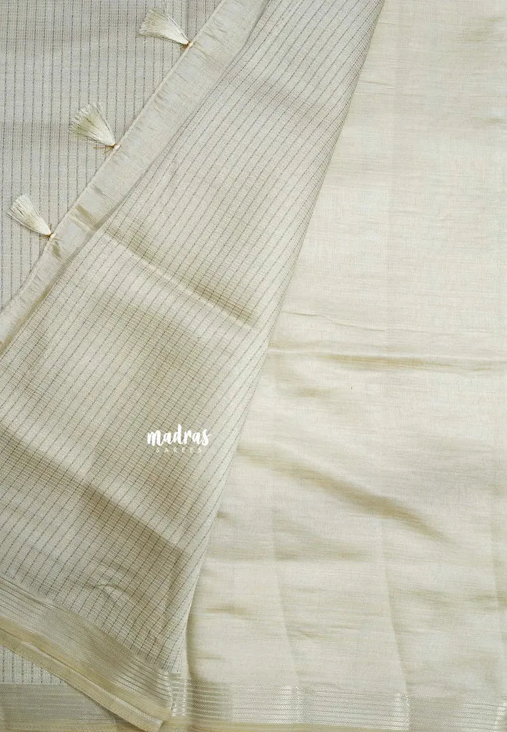 Ivory Cream - Raaga - Semi Tussar Saree Stripes Weaving  Body with Tiny Border - Best for Small Functions
