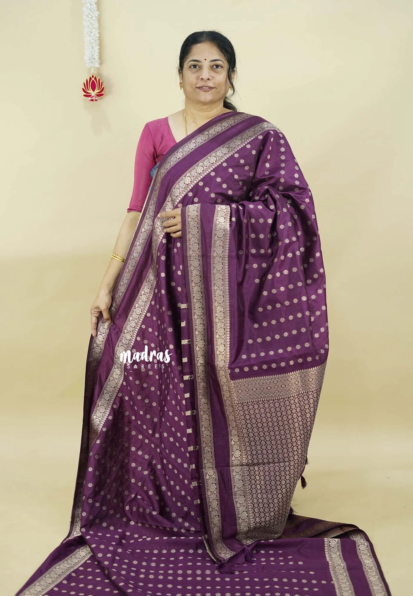 Jamun Purple - Raaga - Premium Raw Mango silk saree with Rettabeta Border and Buttas