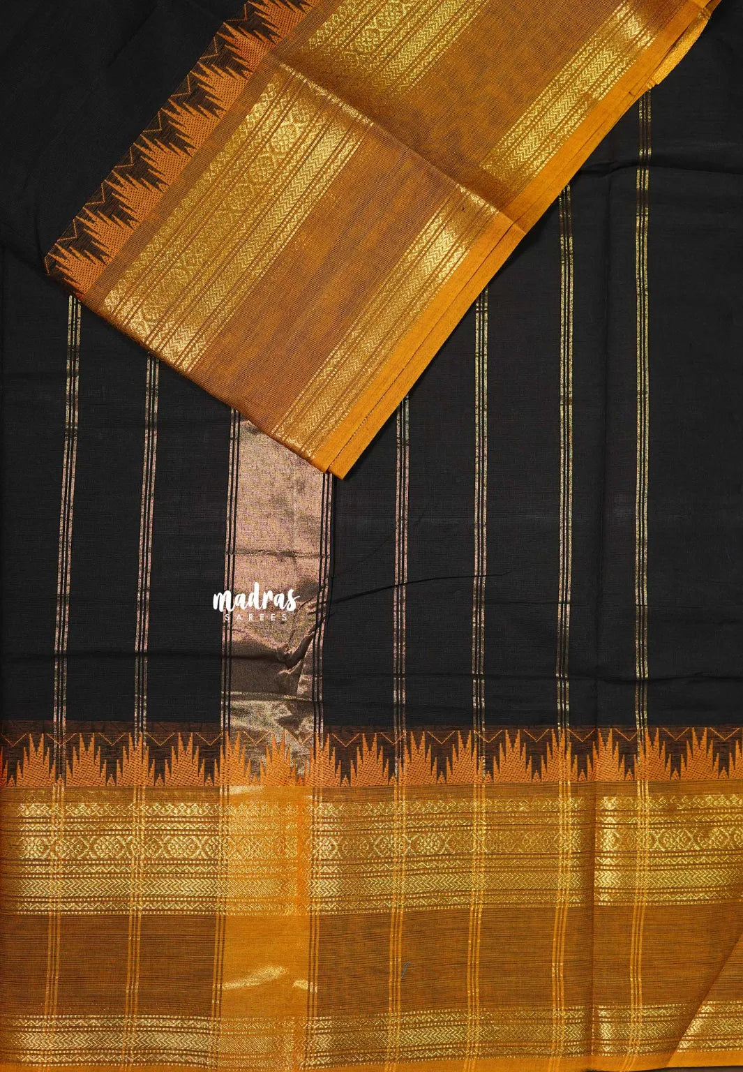 Jet Black - Karthigai Silk Cotton Rettapetta and Classic Temple Border - Best for Gifting