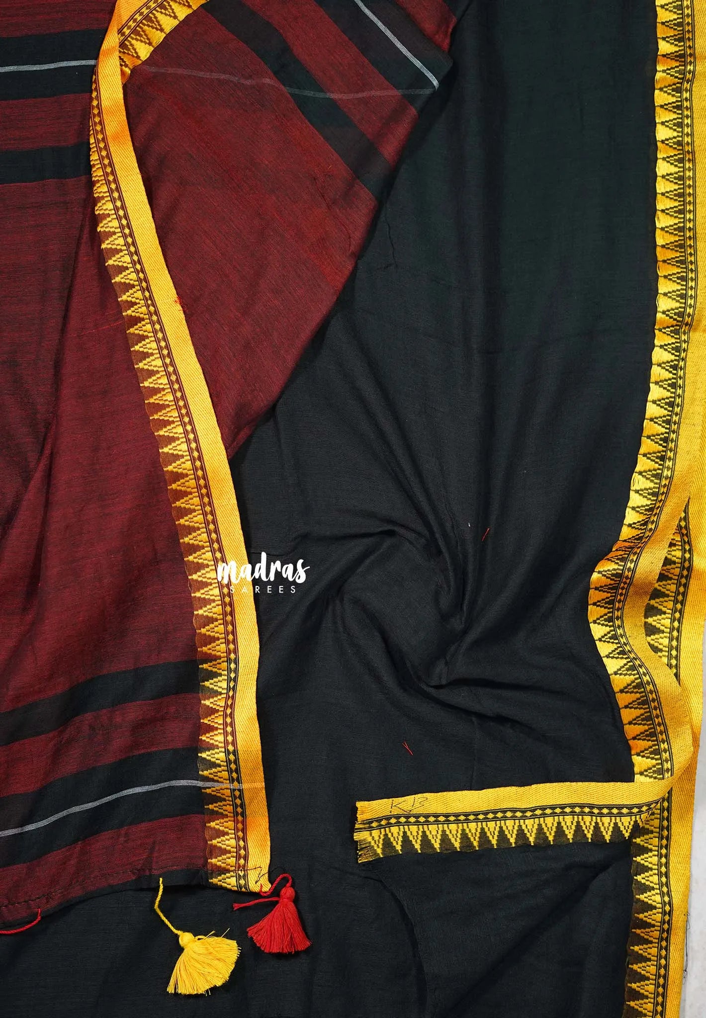 Jet Black - Soft Mul cotton Plain Body with Ganga Jamuna Border - Perfect for Office Wear | summer wear | Casual wear