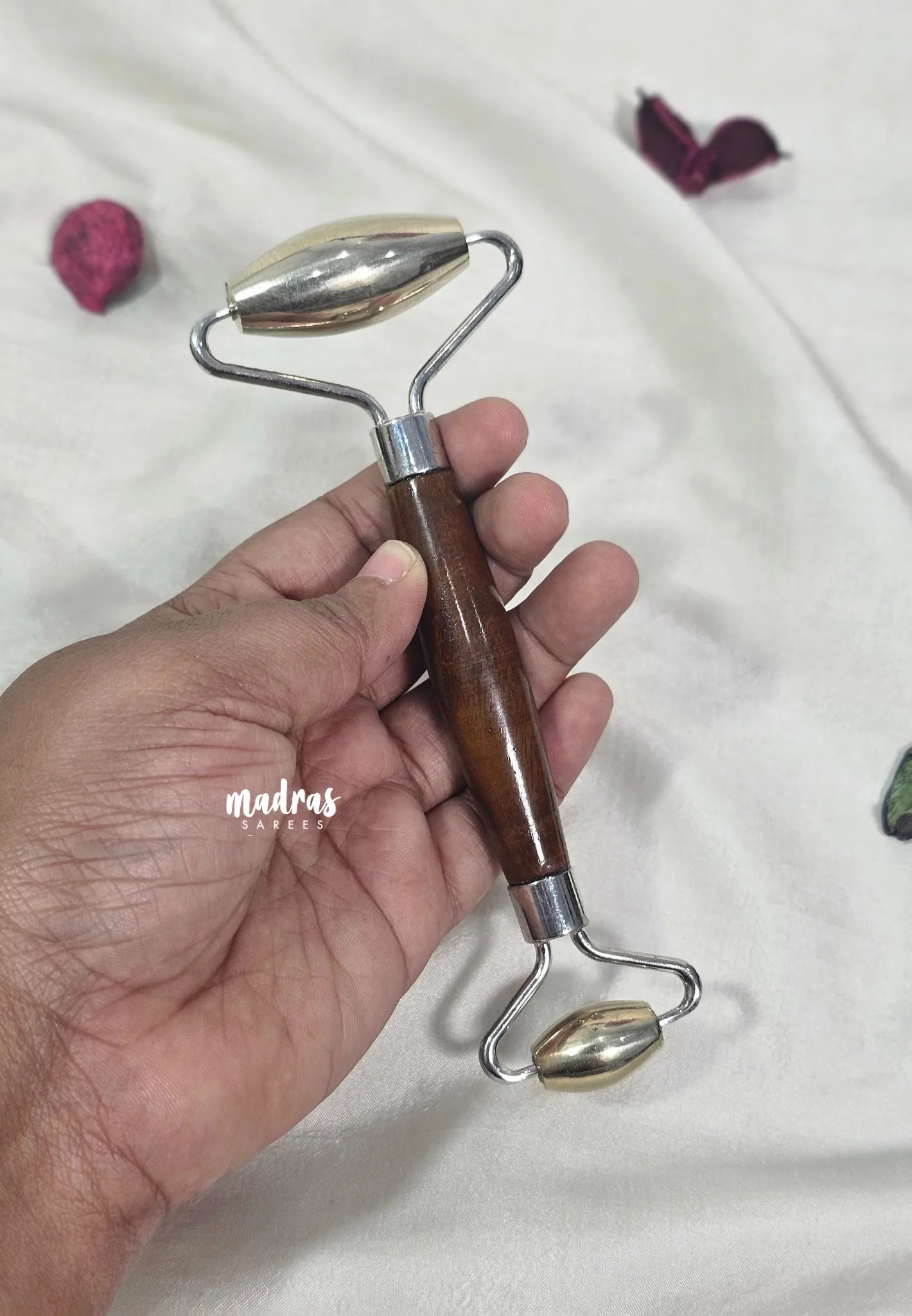 Kansa Wand Face Roller with Premium Wooden Handle - Reduces Puffiness, Boosts Circulation