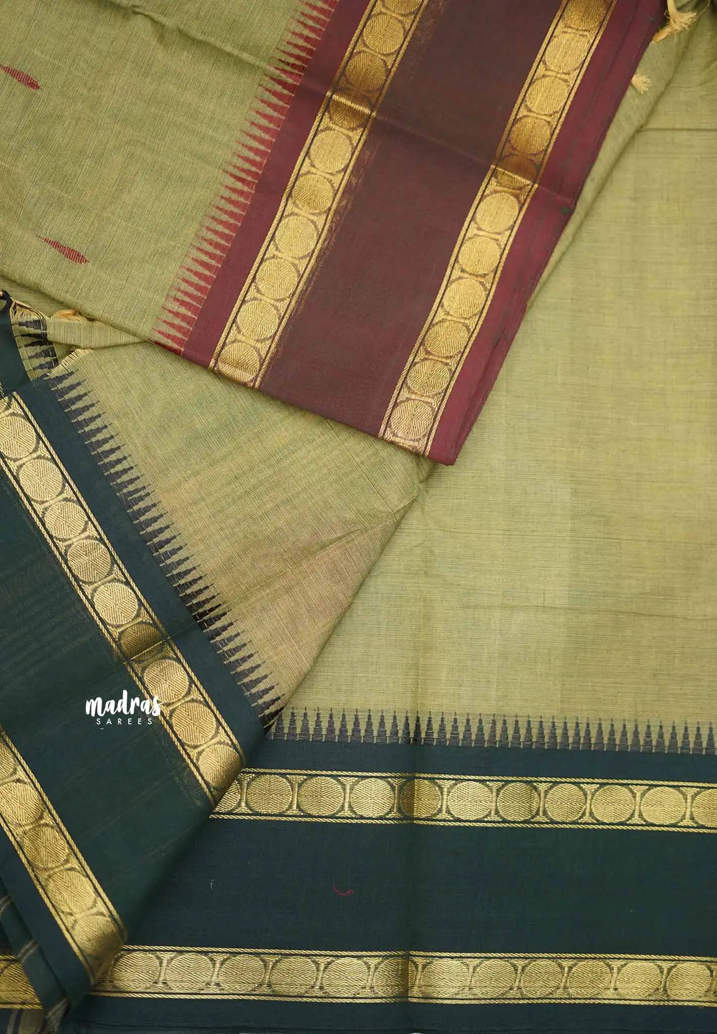 Karthigai silk cotton Big Rudhraksham Ganga Jamuna border - Greenish grey