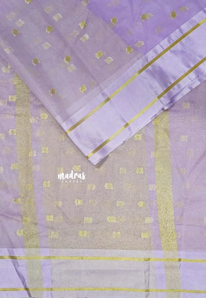 Lavender Blooms  - Soft Organza silk with zari weaving with small zari border
