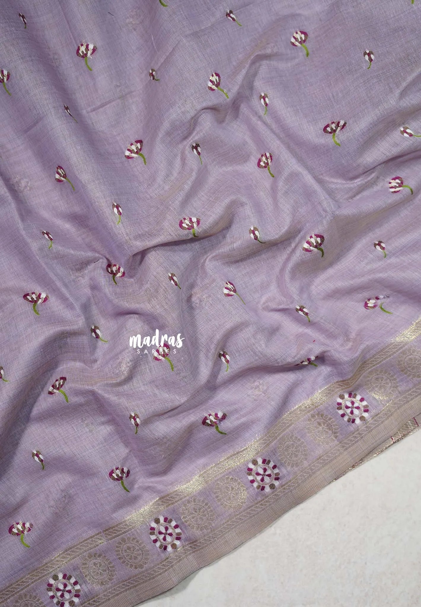 Lavender Glow - Soft Muslin Silk with Floral Thread Weaving Buttas - Perfect for Office Wear