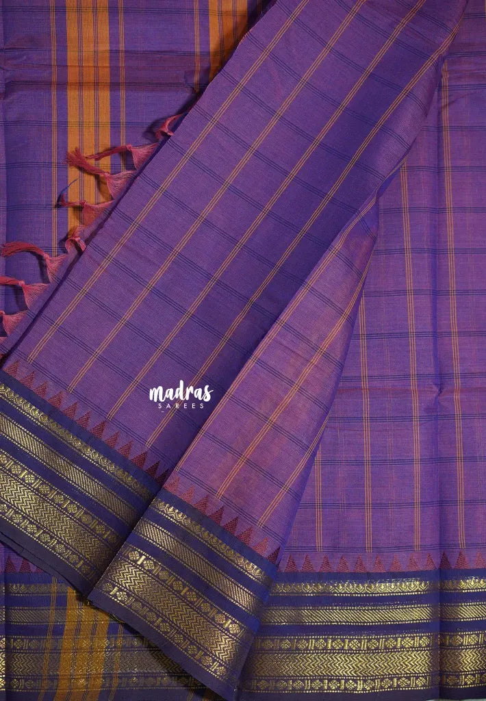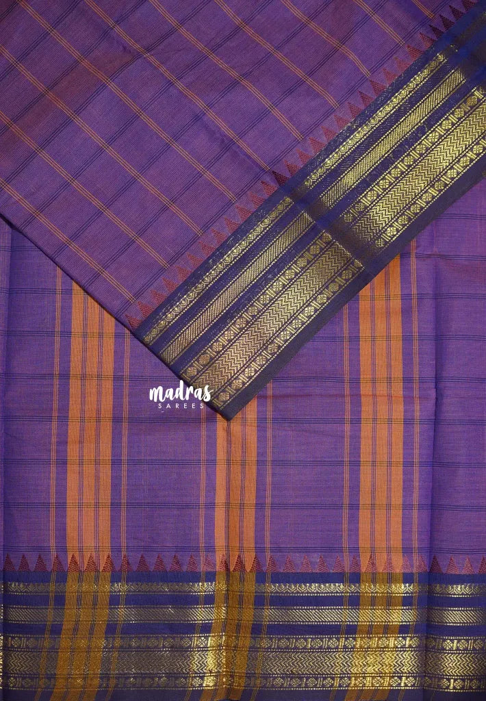 Lavender Purple - Karthigai silk cotton Big Muthu Kattam Checks with Bavanji ant Temple Border - Best for Small Functions