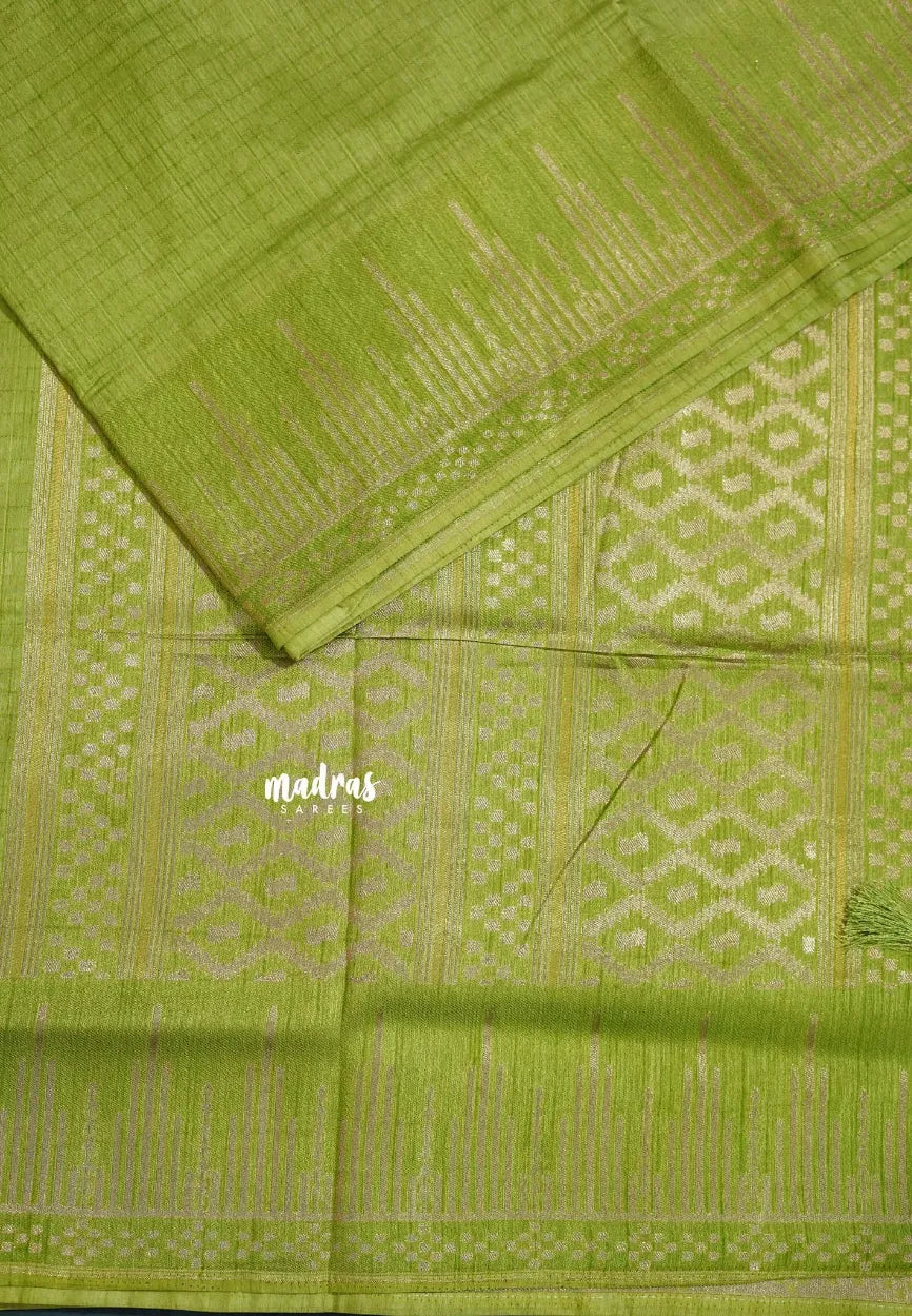 Light Green - Raaga - Raw Mango Tussar Silk with Stripe Temple Border and Piping - Best for Pooja Days