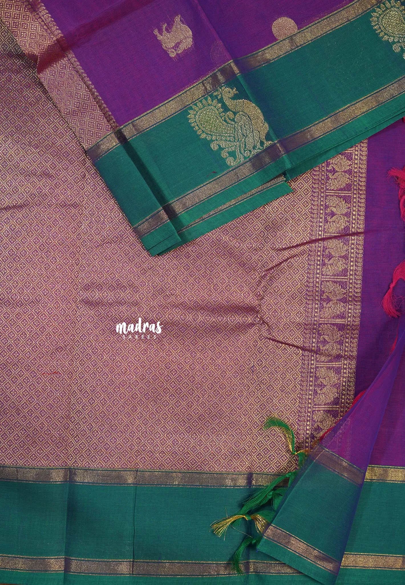 Magenta Purple - Korvai silk cotton saree with Rettapetta Border  - Best for Festive Wear