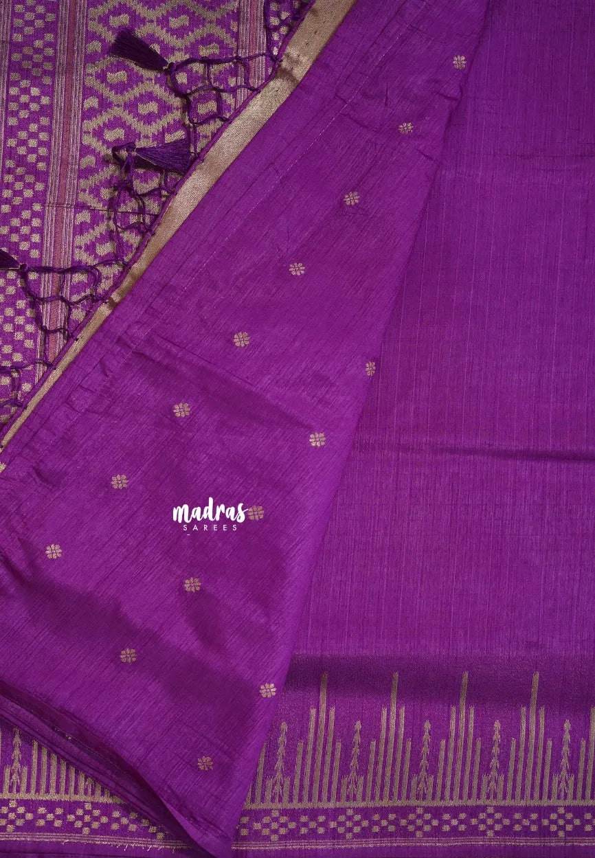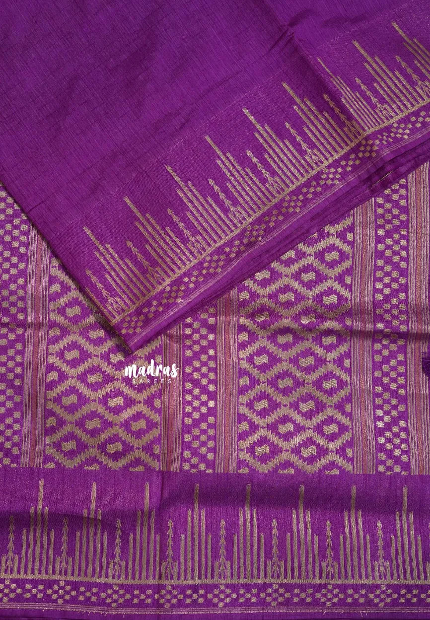 Magenta Purple - Raaga - Raw Mango Tussar Silk with Stripe Temple Border and Piping - Best for Pooja Days