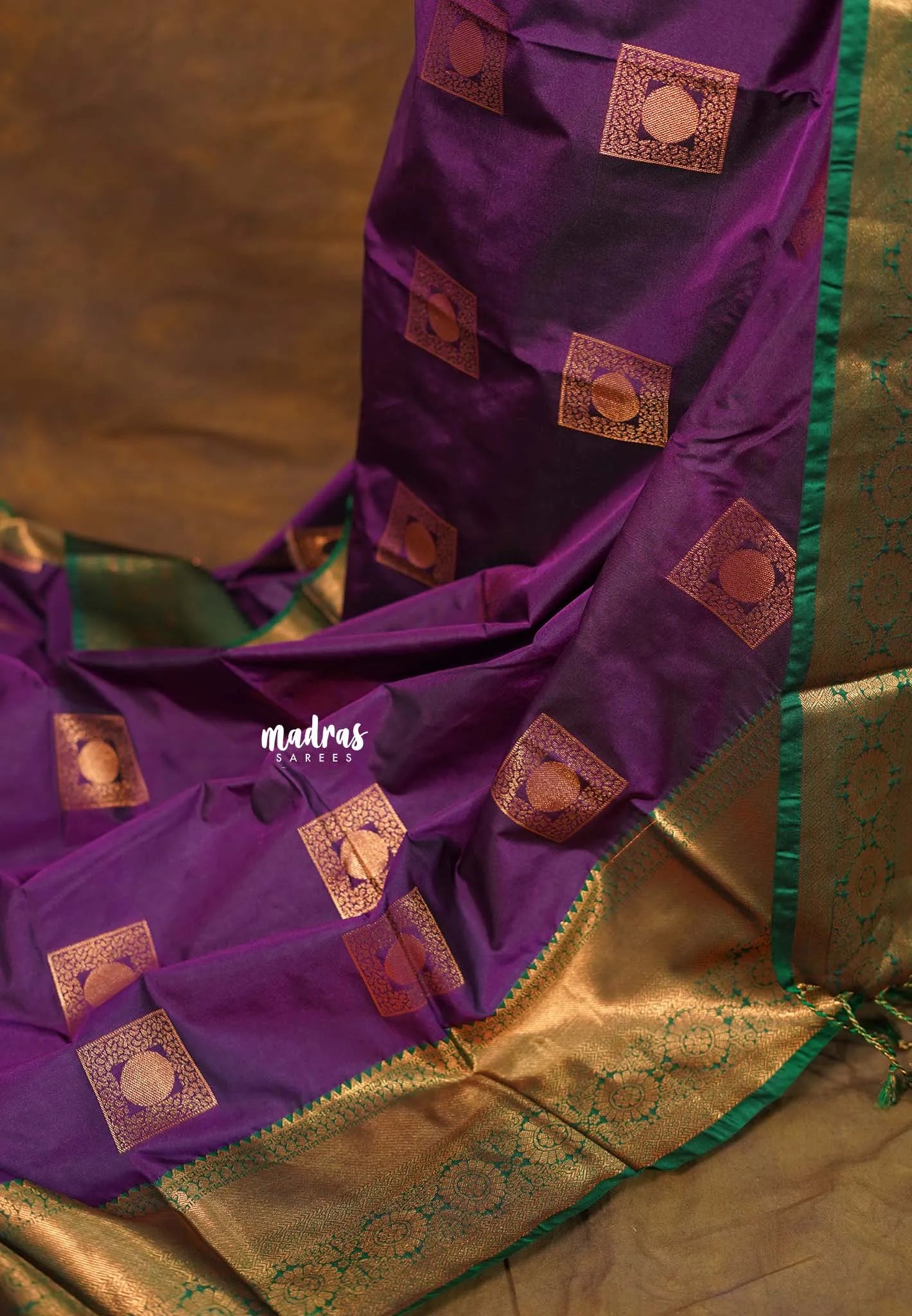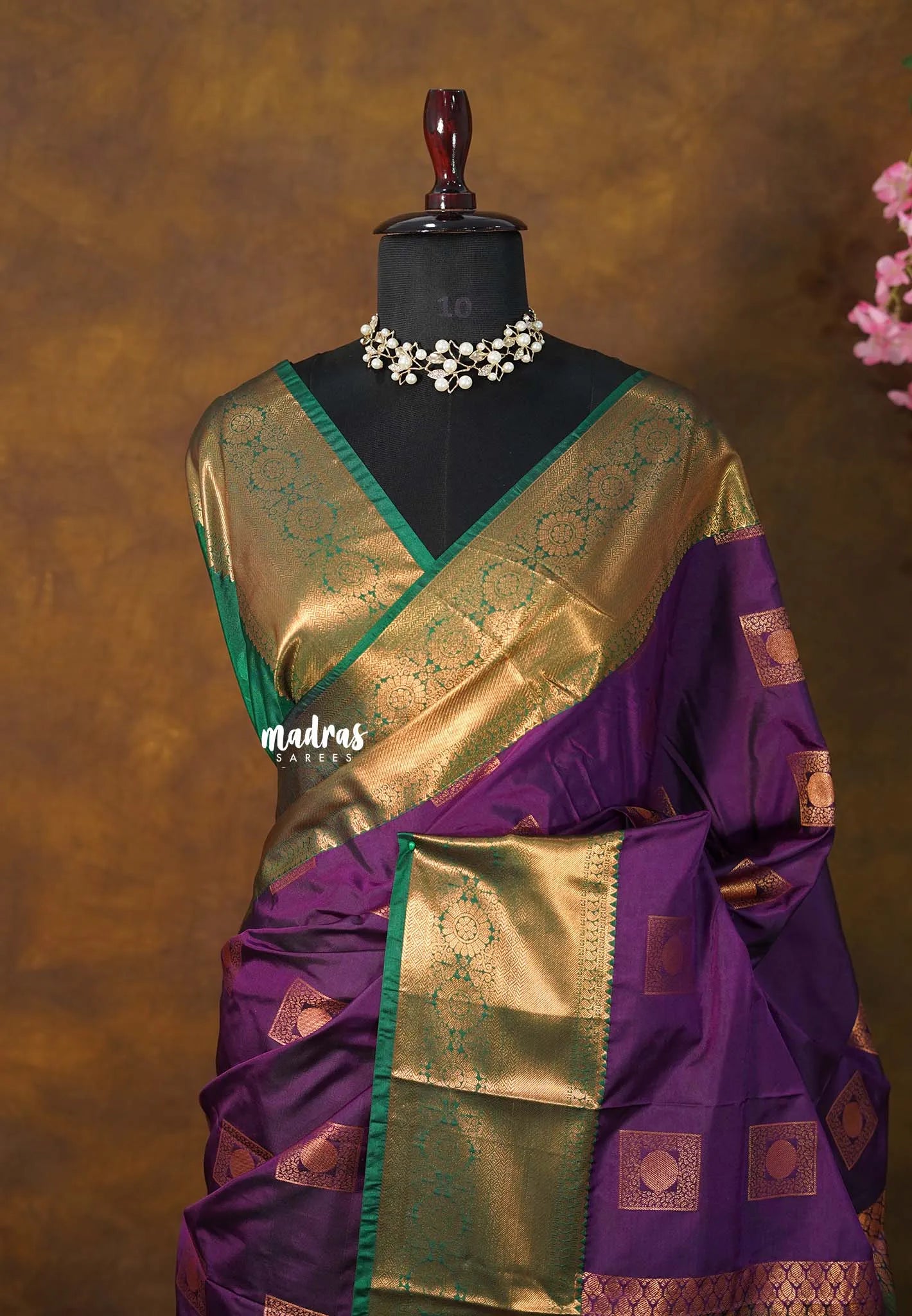 A symbol of elegance and auspicious beginnings, Sowbhagya Gift Silk features intricate traditional patterns and a refined zari border. Perfect for special moments, sacred ceremonies, and treasured gifts.