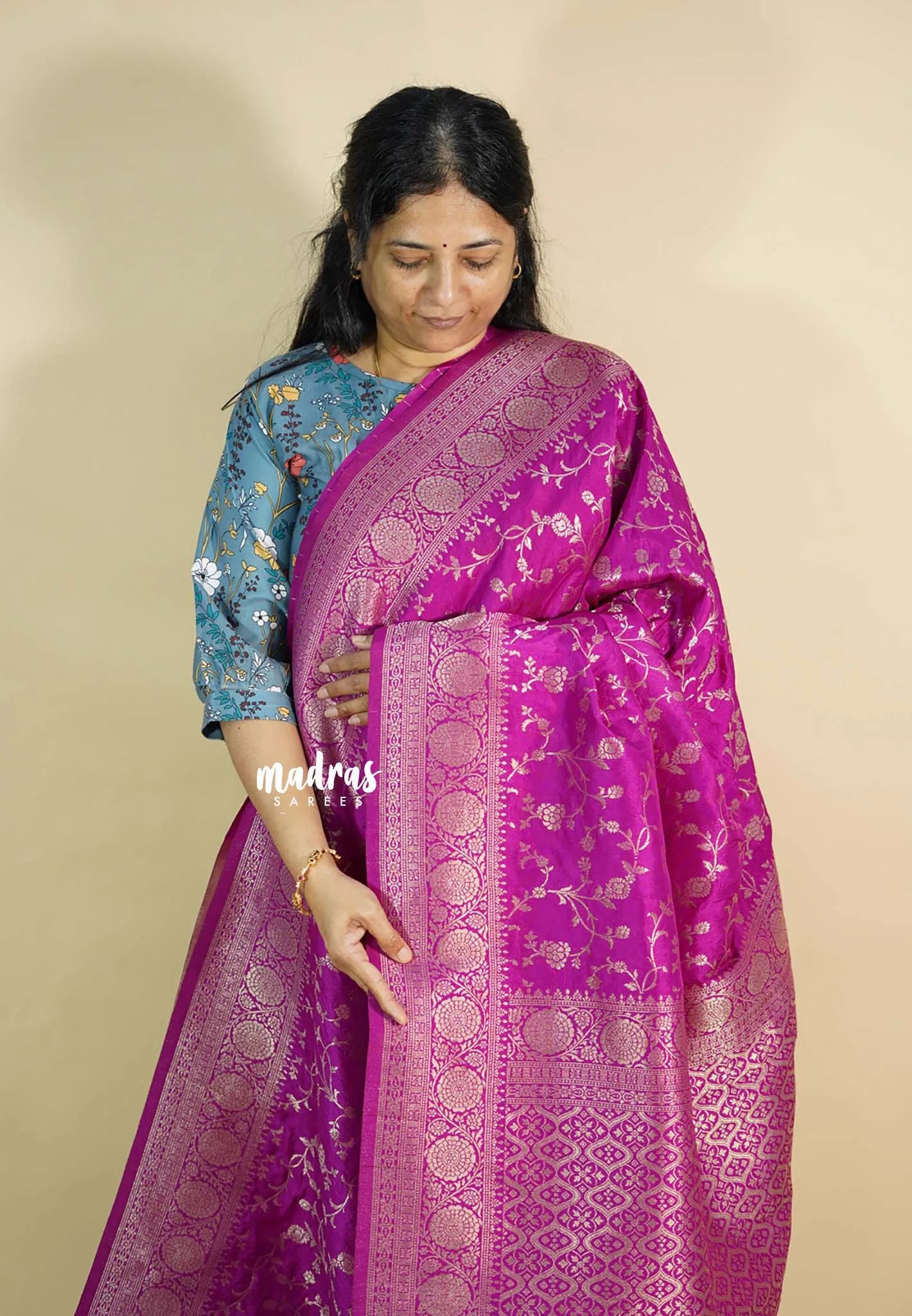 A rich Banarasi khadi georgette saree is a stunning choice that combines the luxurious feel of Banarasi weaves with the lightweight and flowing nature of georgette. Here are some highlights and styling tips for this beautiful saree: