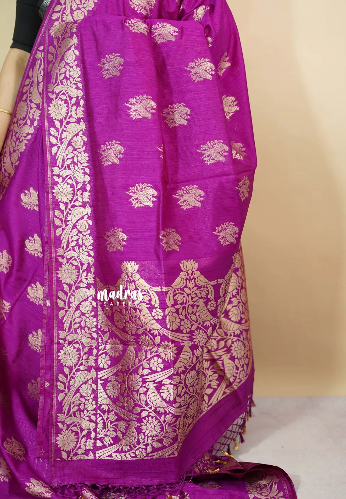 Magenta - Vadhanam - Premium Jute tussar with full birds weaving buttas and border