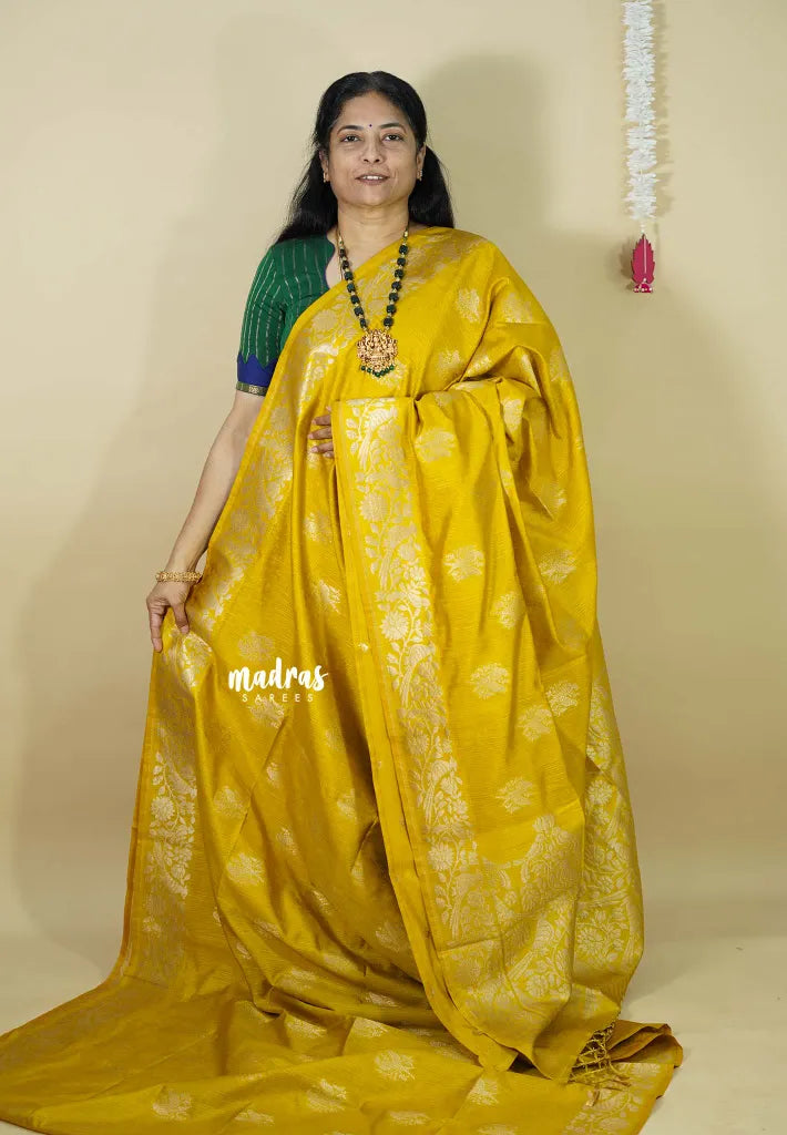 Fabric: Made from luxurious jute tussar silk, offering a smooth and rich texture.