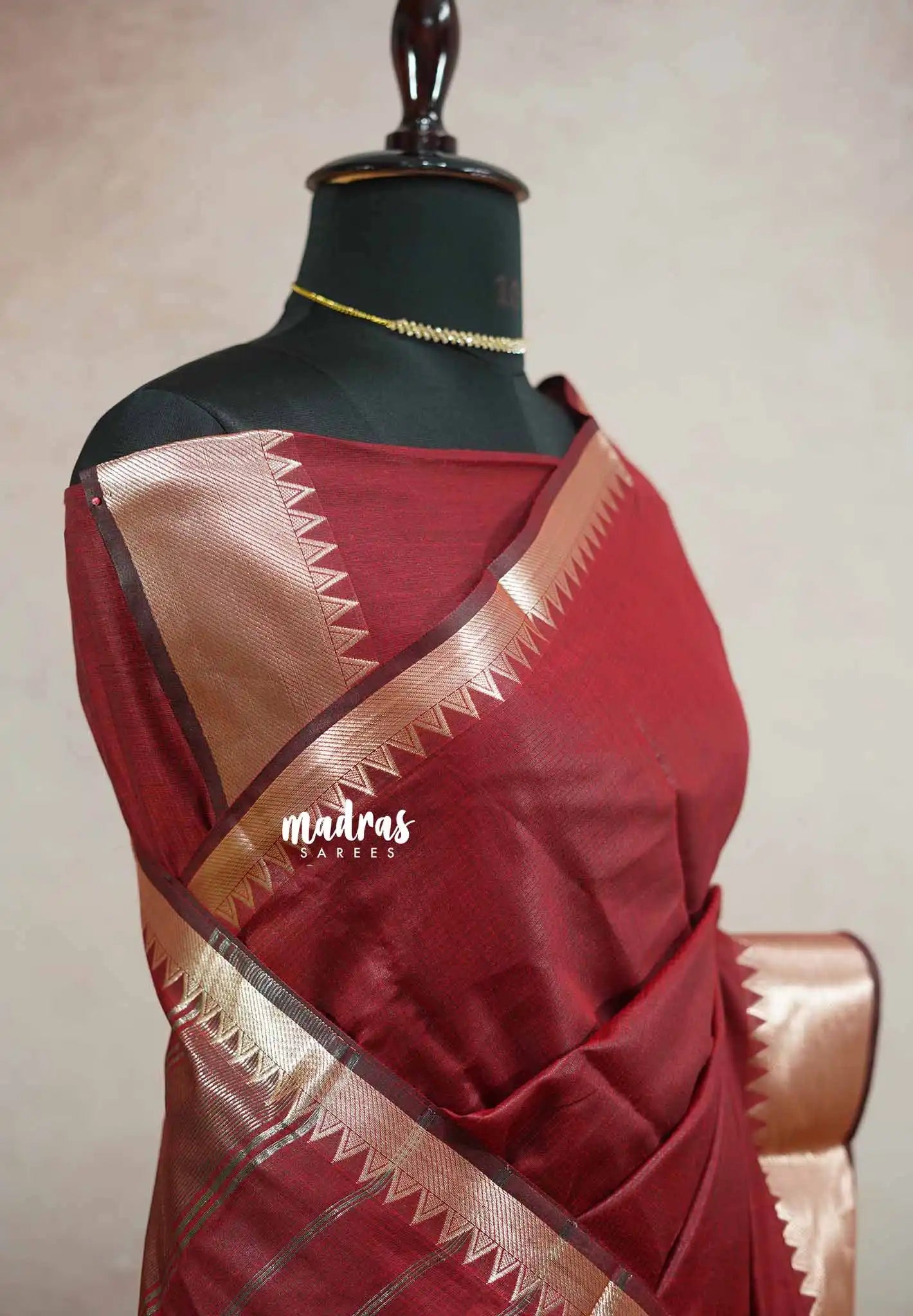 With its lightweight and smooth texture, Maheswari Cotton silk with thread weaving border saree is perfect as corporate wear, providing both style and comfort.