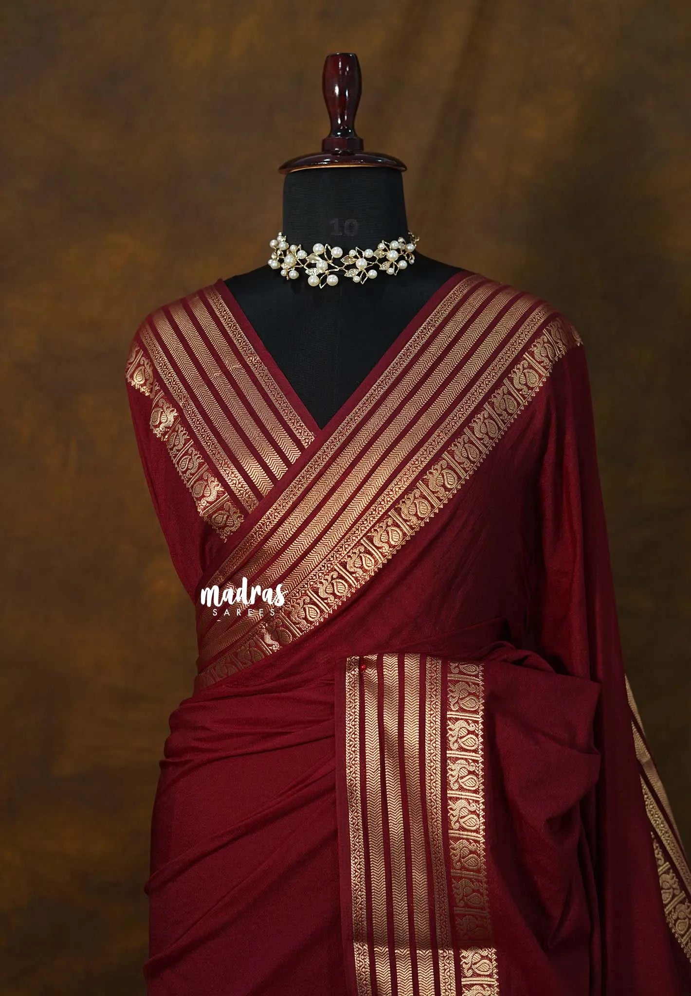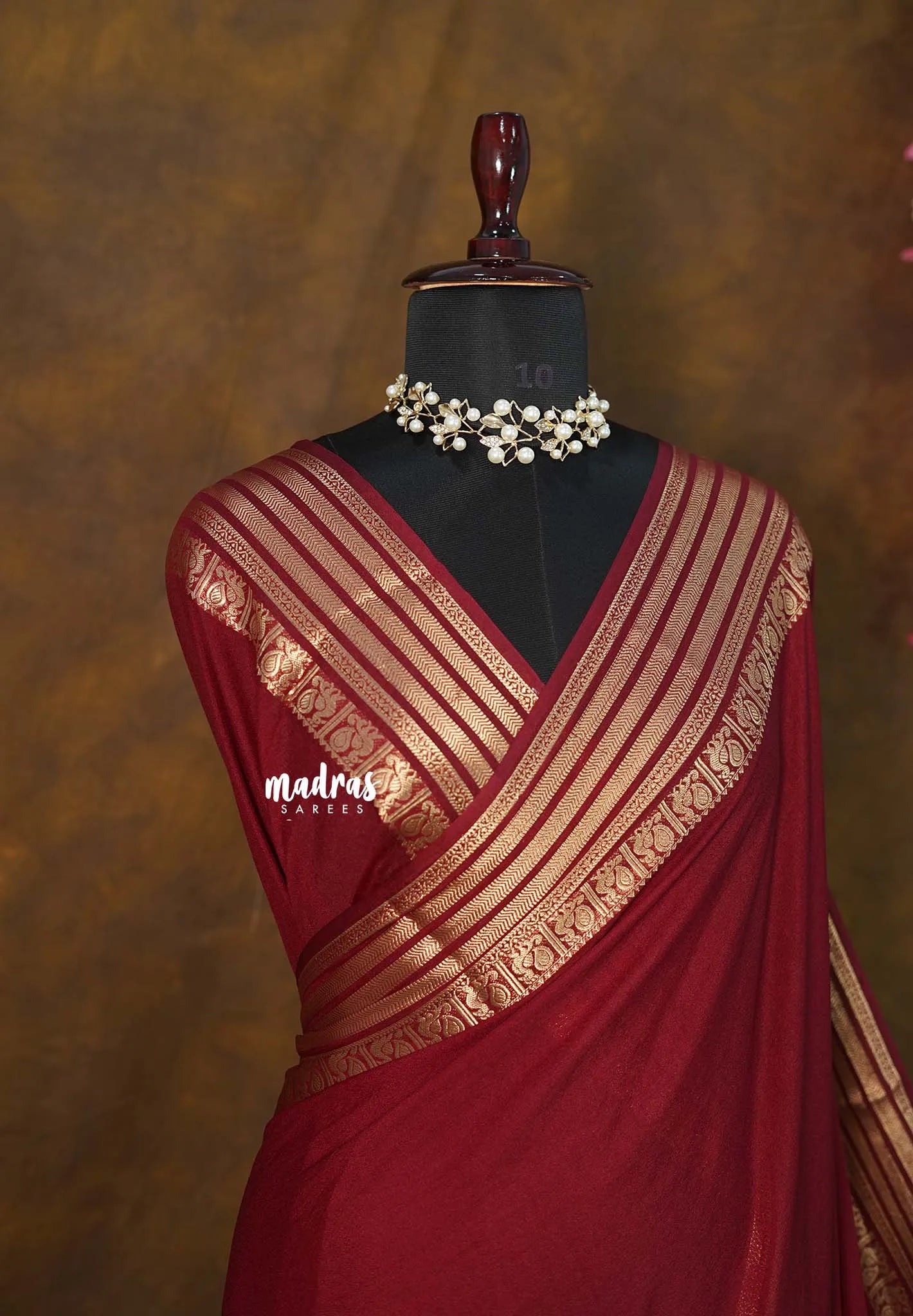 (PRE-BOOKING) Majestic Maroon - Avantika - Semi Mysore silk with traditional mayil border - Perfect for Festival Wear
