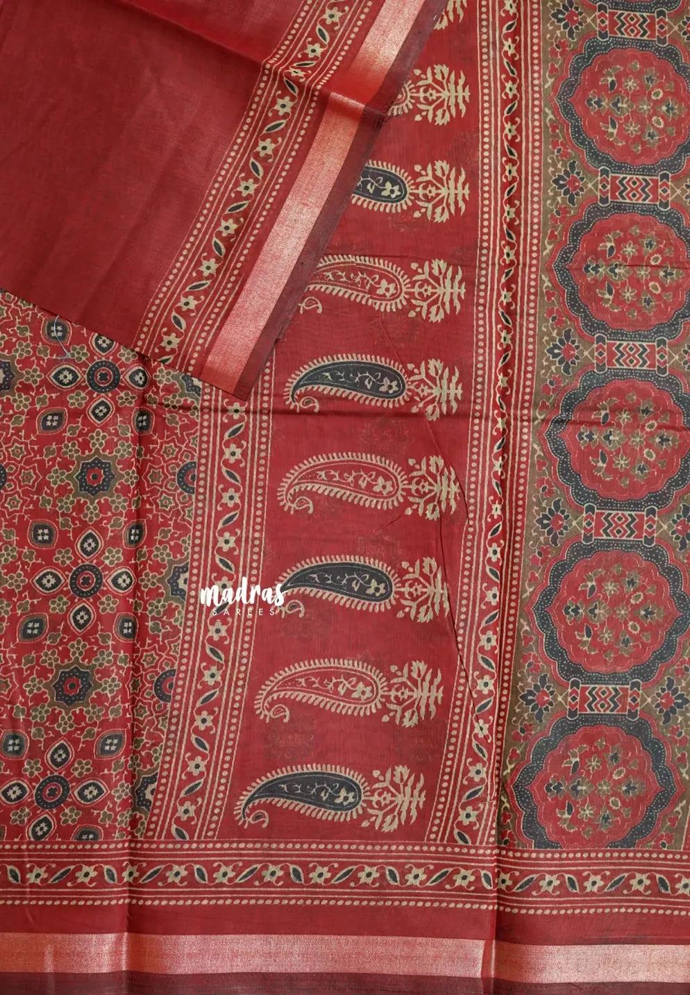 Majestic Maroon - Kalanjali Soft Chanderi Silk with Ajrakh Prints