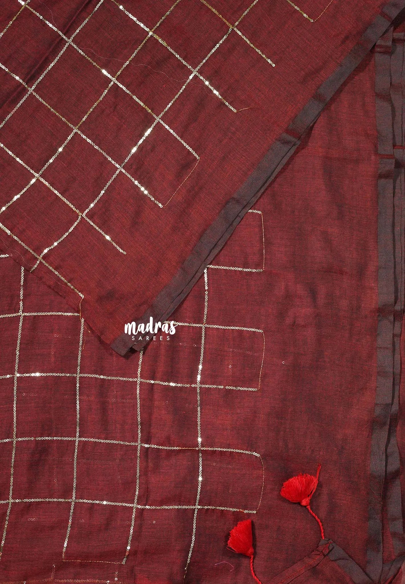 Majestic Maroon - Soft Mul cotton with Jamki work and no Blouse - Perfect for Evening party | Reception | Award function