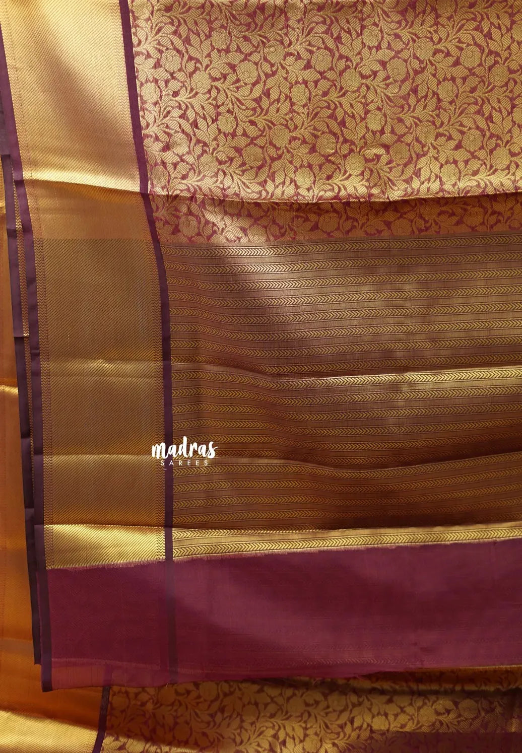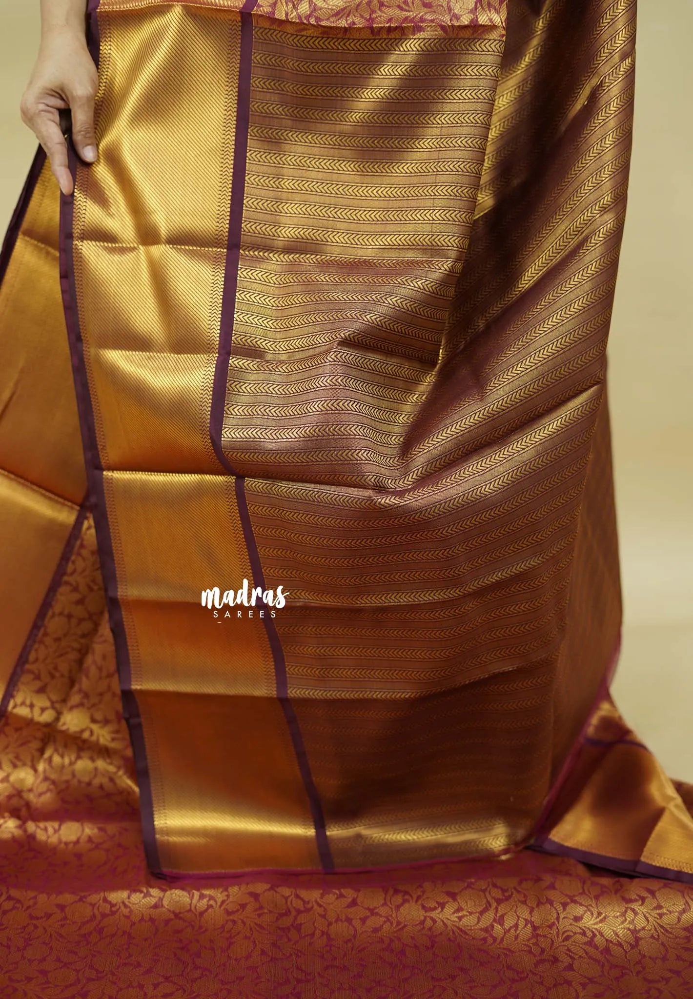 Kanchi semi Silk Saree with grand intregate floral weaving all over the body. Semi silk sarees represent modern variations of classic silk sarees influenced by the need for luxury and comfort in silk sarees at very affordable prices.