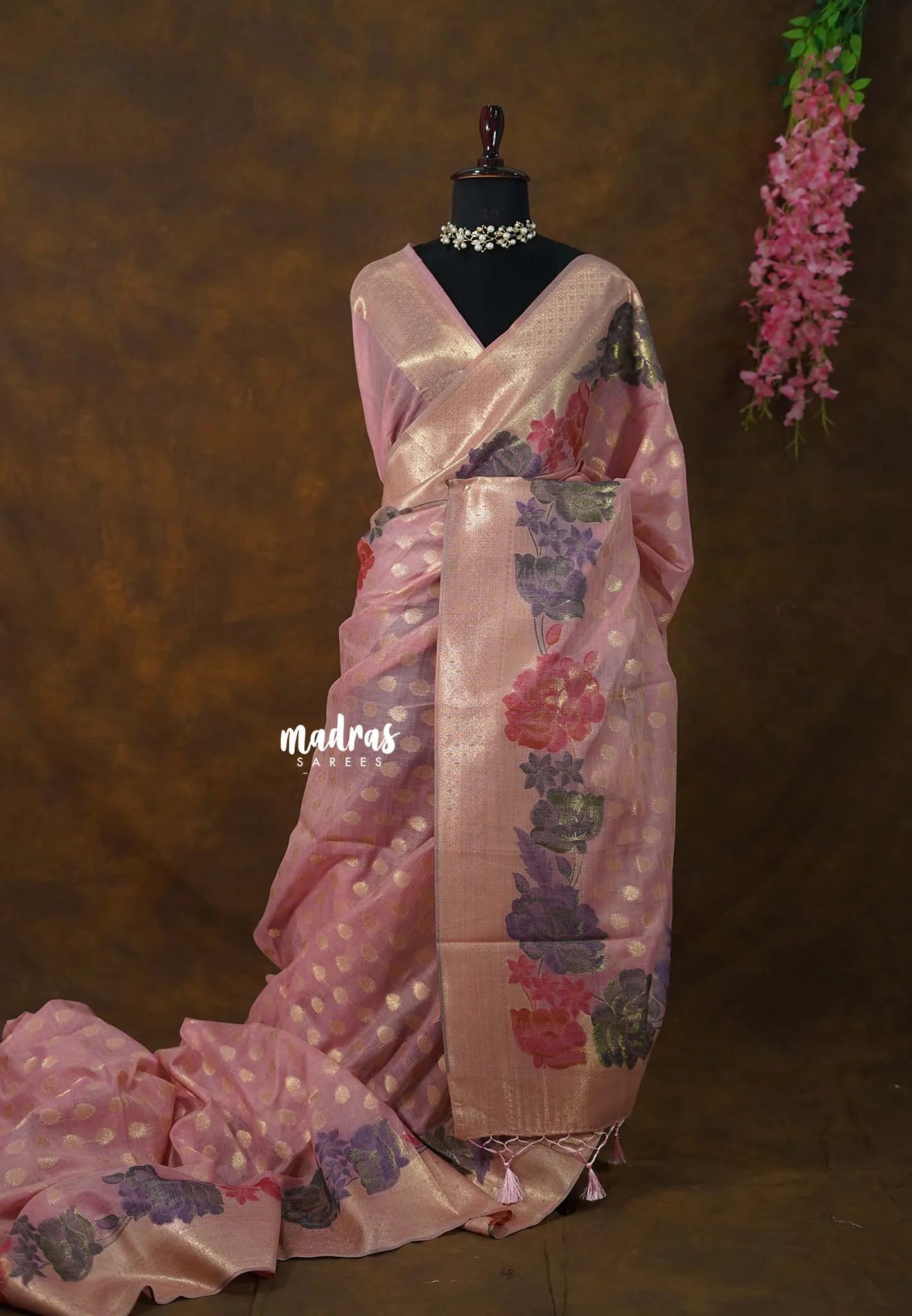 Mauve Pink - Muslin Silk with Full Flower Weaving - Perfect for Festive Wear
