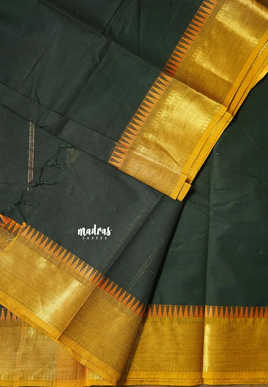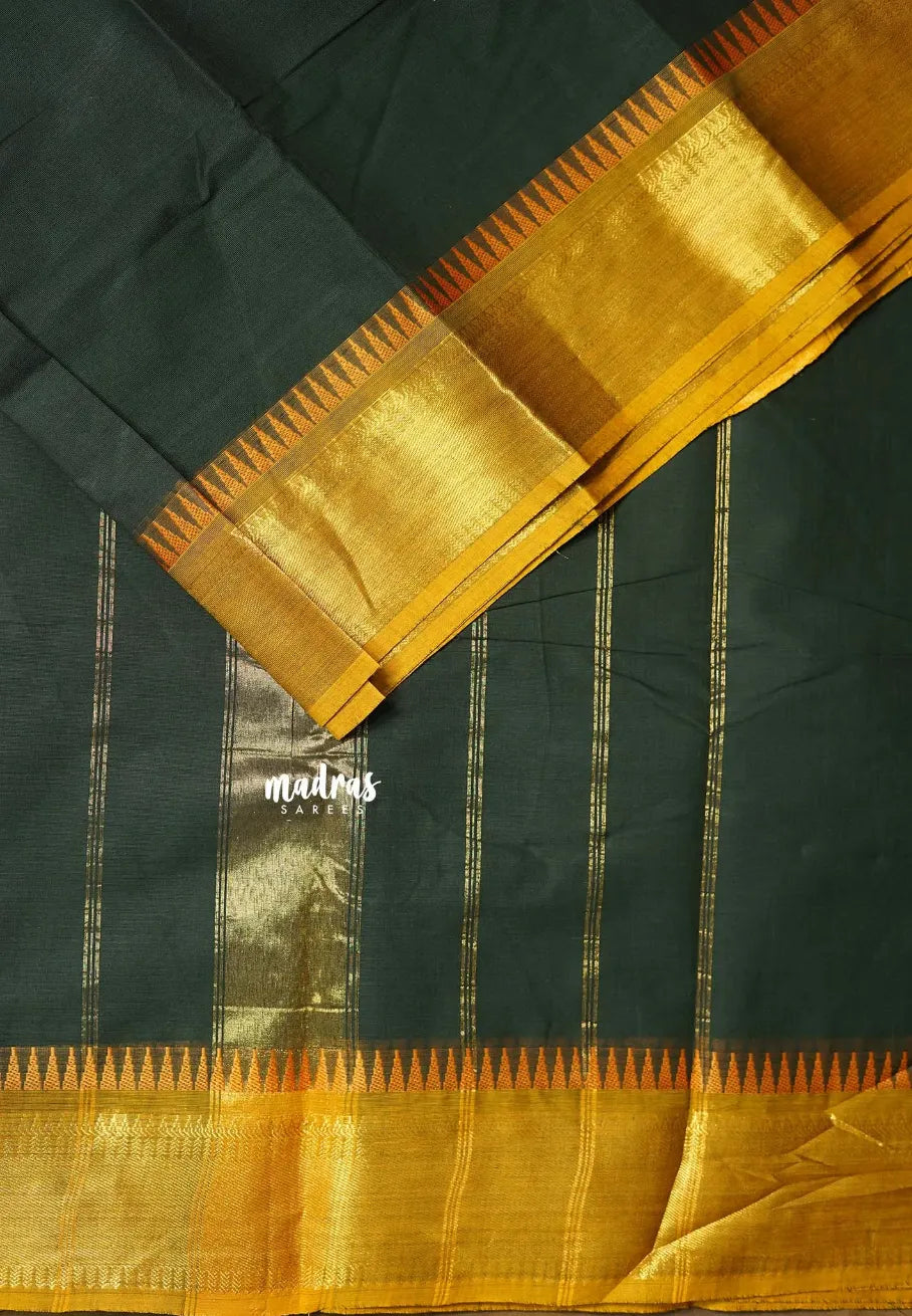 Midnight Emerald Green- Karthigai silk cotton getti zari with small temple border - Best for Wedding Functions