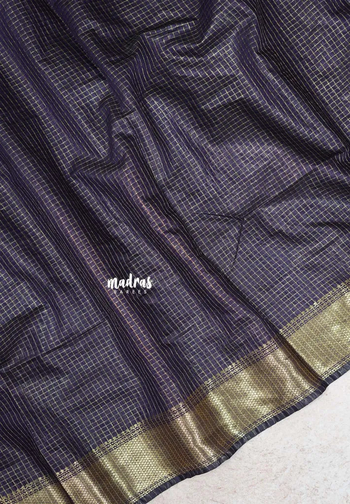 A Mangalgiri silk saree with a checked body and a self-designed blouse creates a seamless, elegant look, with both the saree and blouse crafted from the same luxurious silk fabric. The checkered pattern on the saree adds texture and subtle shine, while the self-blouse maintains a harmonious, coordinated appearance.