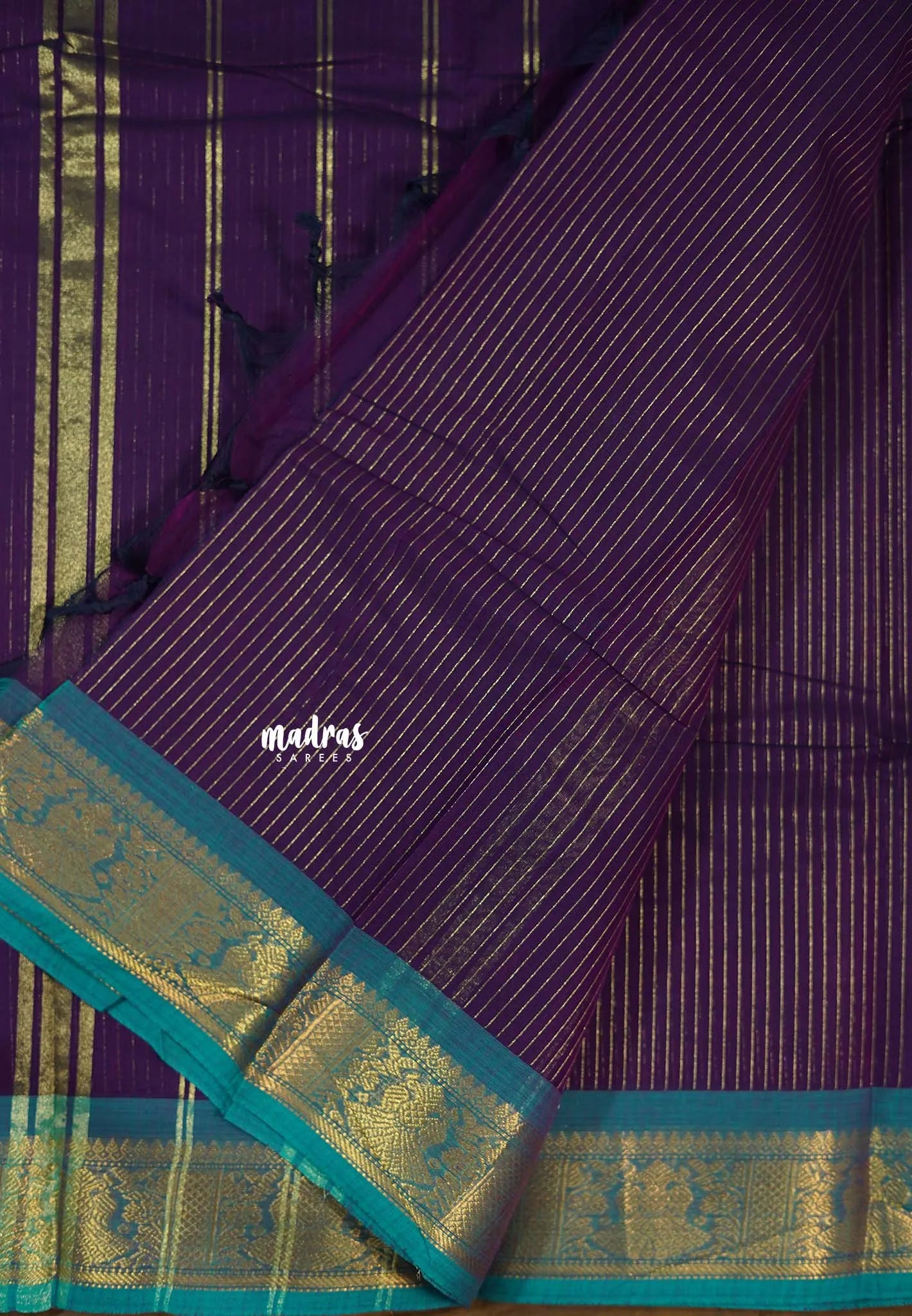 Midnight Purple - Karthigai Silk Cotton saree with Stripes Weaving - Best for Festive Wear