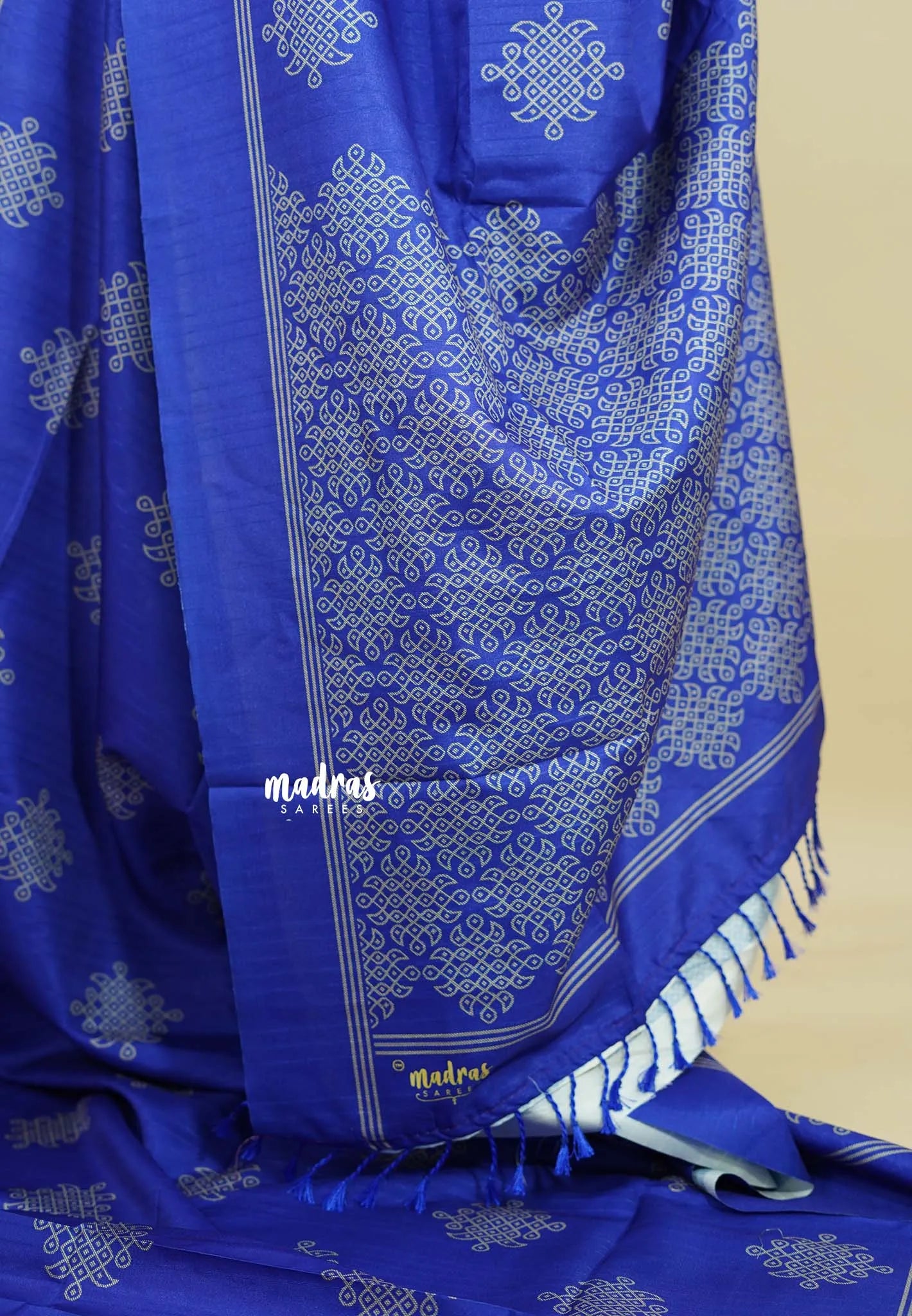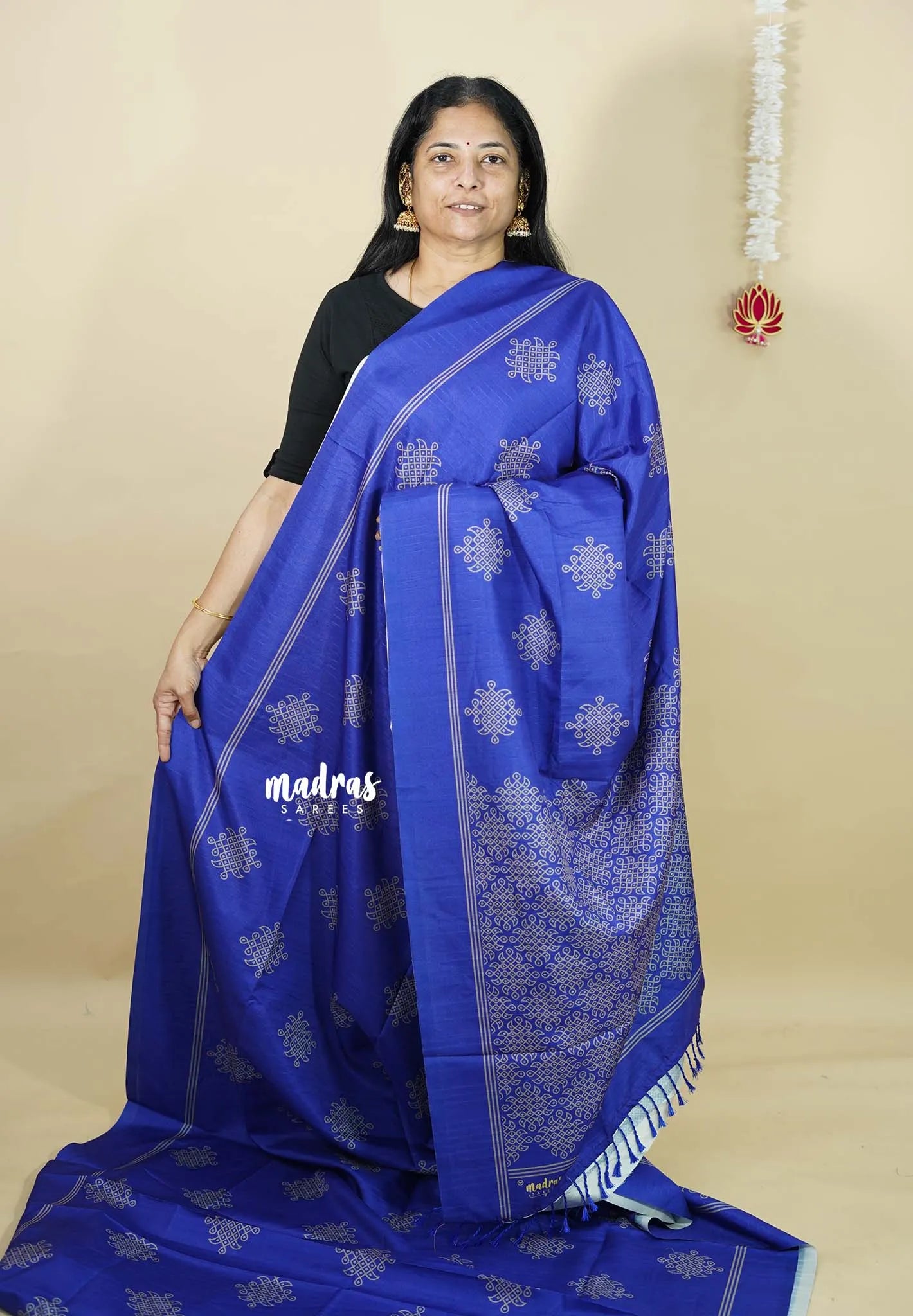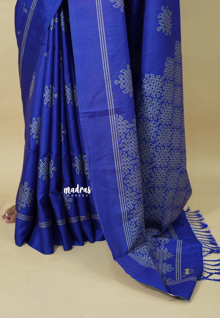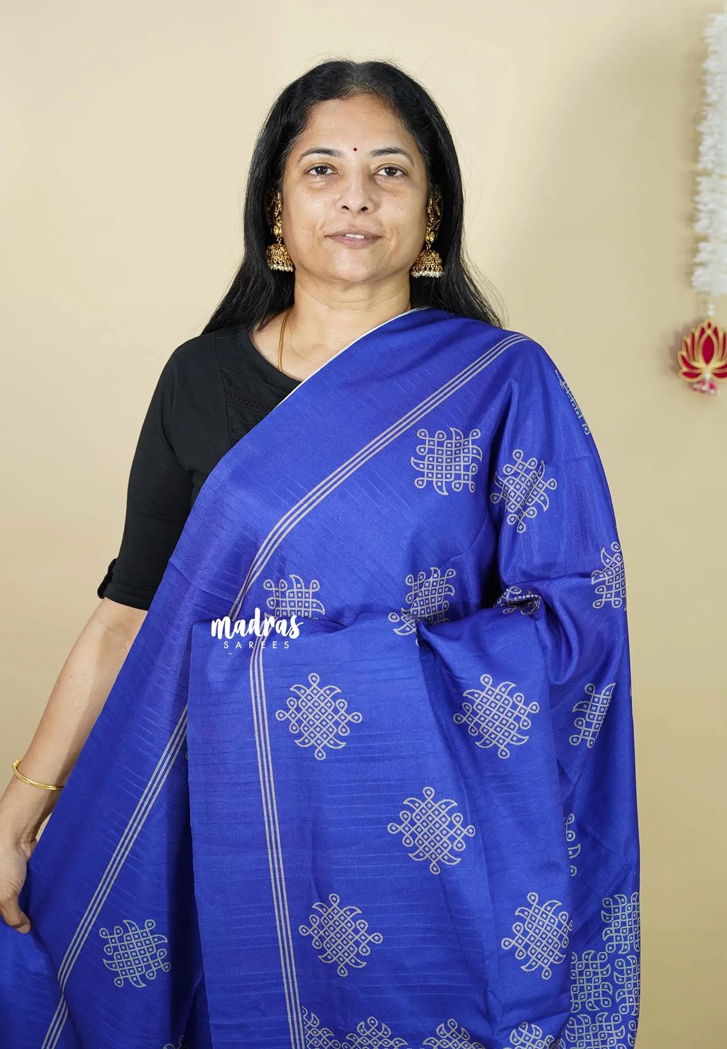 Drape yourself in understated elegance with this Yamini Paper Silk Saree, beautifully adorned with traditional Kolam-inspired motifs throughout. The gentle sheen of paper silk highlights the detailed prints, while its lightweight texture ensures graceful draping and all-day comfort.