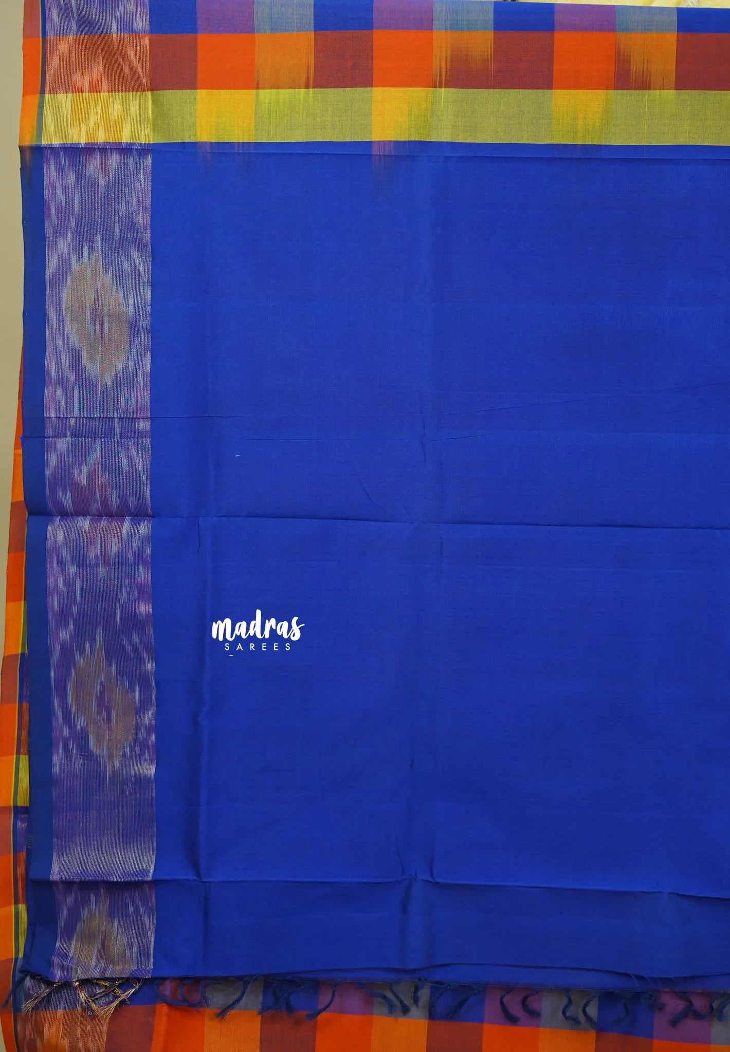 Grace meets grandeur in this Vaibhogam Cotton Silk Saree, woven in a rich blend of silk sheen and cotton comfort. The elegant contrast borders highlight its timeless charm, while the soft drape and lustrous texture make it perfect for festive and traditional moments.