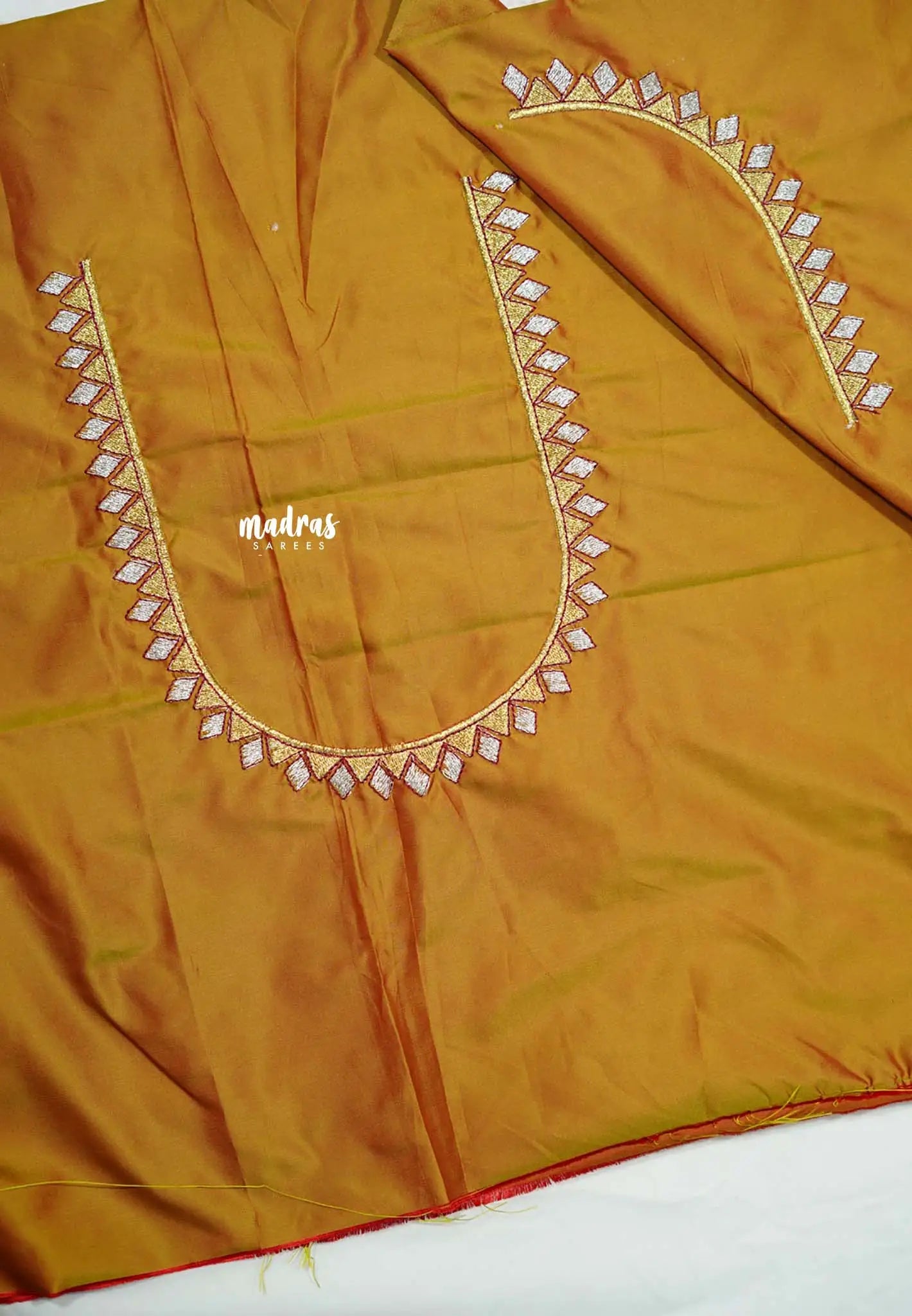 Premium silk cotton blouse piece with intricate embroidery on a rich base. Featuring vibrant traditional motifs and elegant neckline work, this 1-meter fabric is perfect for pairing with sarees or lehengas. Soft, breathable, and easy to stitch for festive or casual looks
